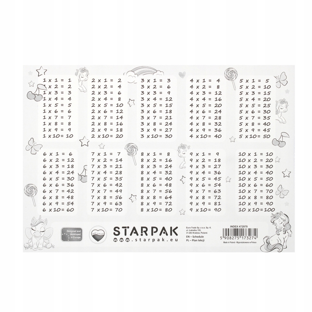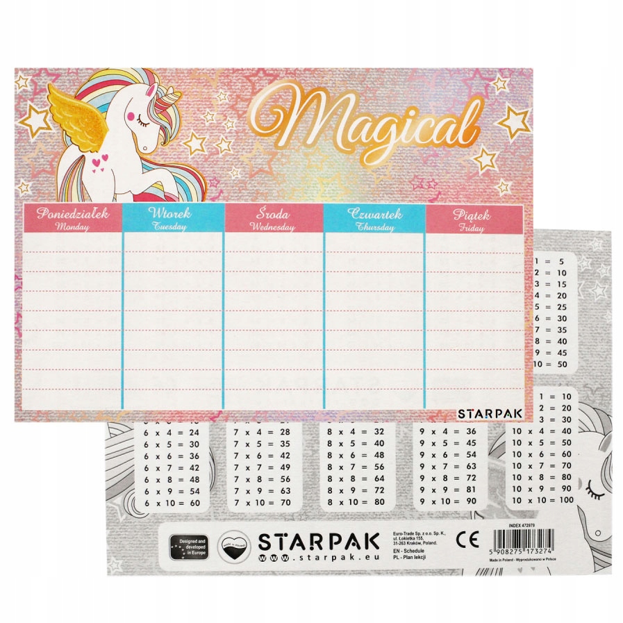 Код производителя dziecięcy plan lekcji z tabliczką mnożenia A5
