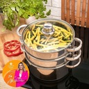 Elementy zestawu: - garnek do wody, - 2 wkłady parowe, - pokrywka,