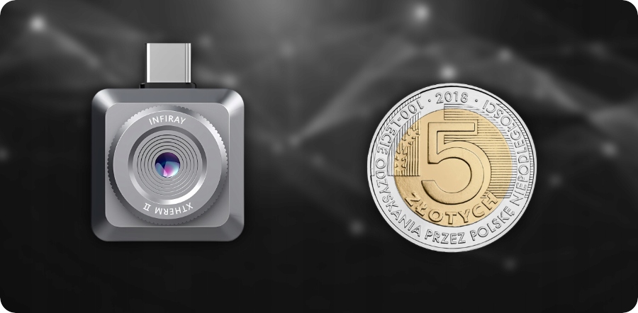 Kamera termowizyjna Xtherm II T2L - waży tylko 18 gramów i ma wymiary 26 x 26 x 26 mm.