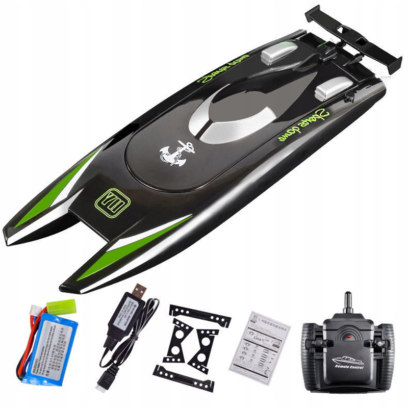 2.4G RC Łodzie 25KM/H Szybka łódź wyścigowa 2 rozwojowy Podwójny silnik Łodzie zdalnie sterowane dla dzieci Dorosła łódź wyścigowa czarny
