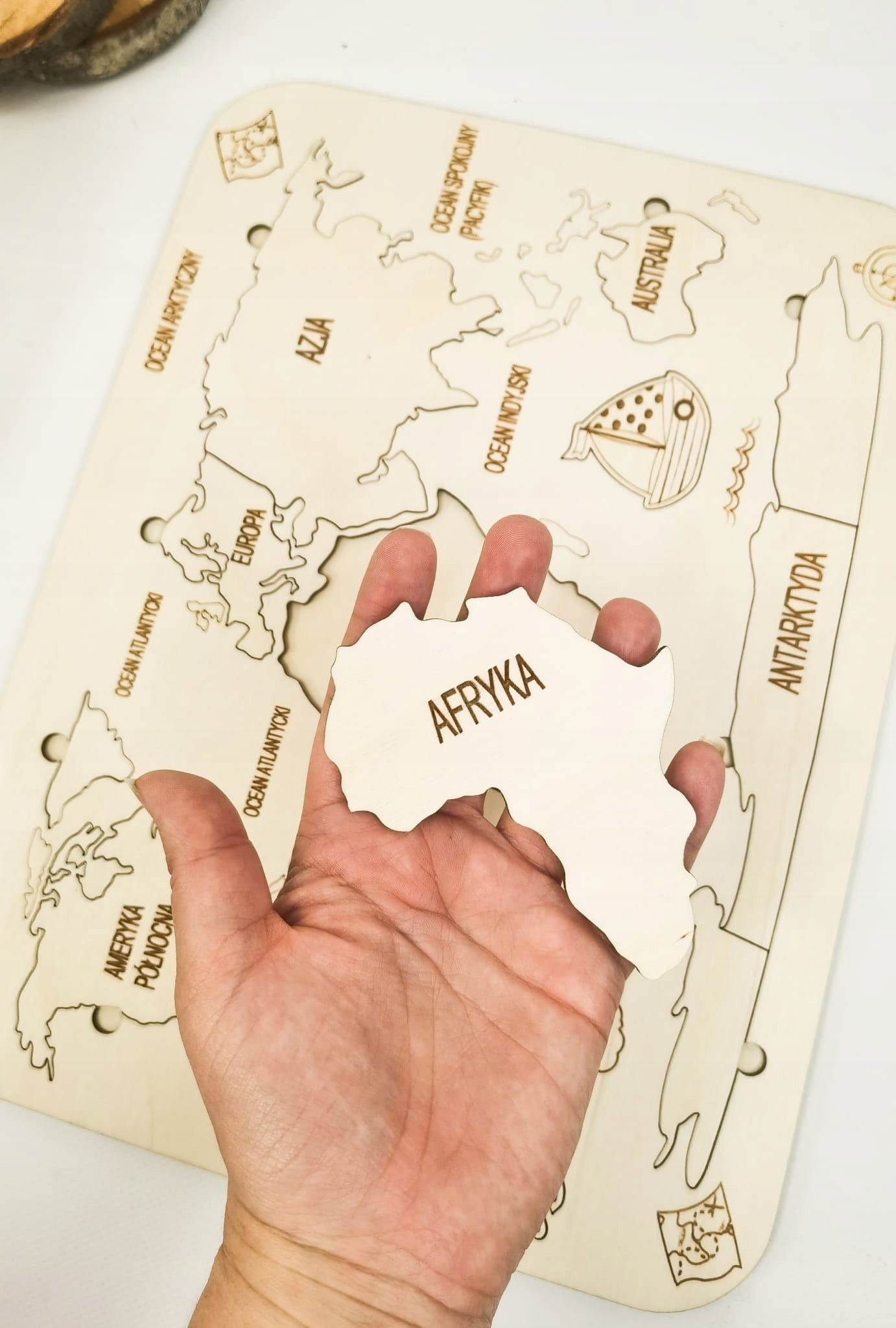 Każdy kontynent można wyjąć, odrysować, nazwać i ułożyć.