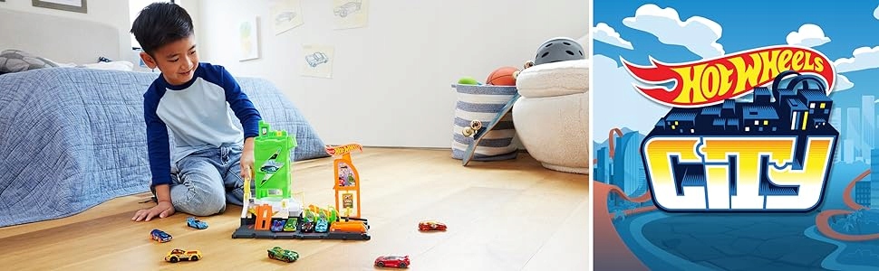 Połącz stację paliw z innymi zestawami i torami Hot Wheels, aby zbudować wyjątkowy świat przygód typu push-and-play.