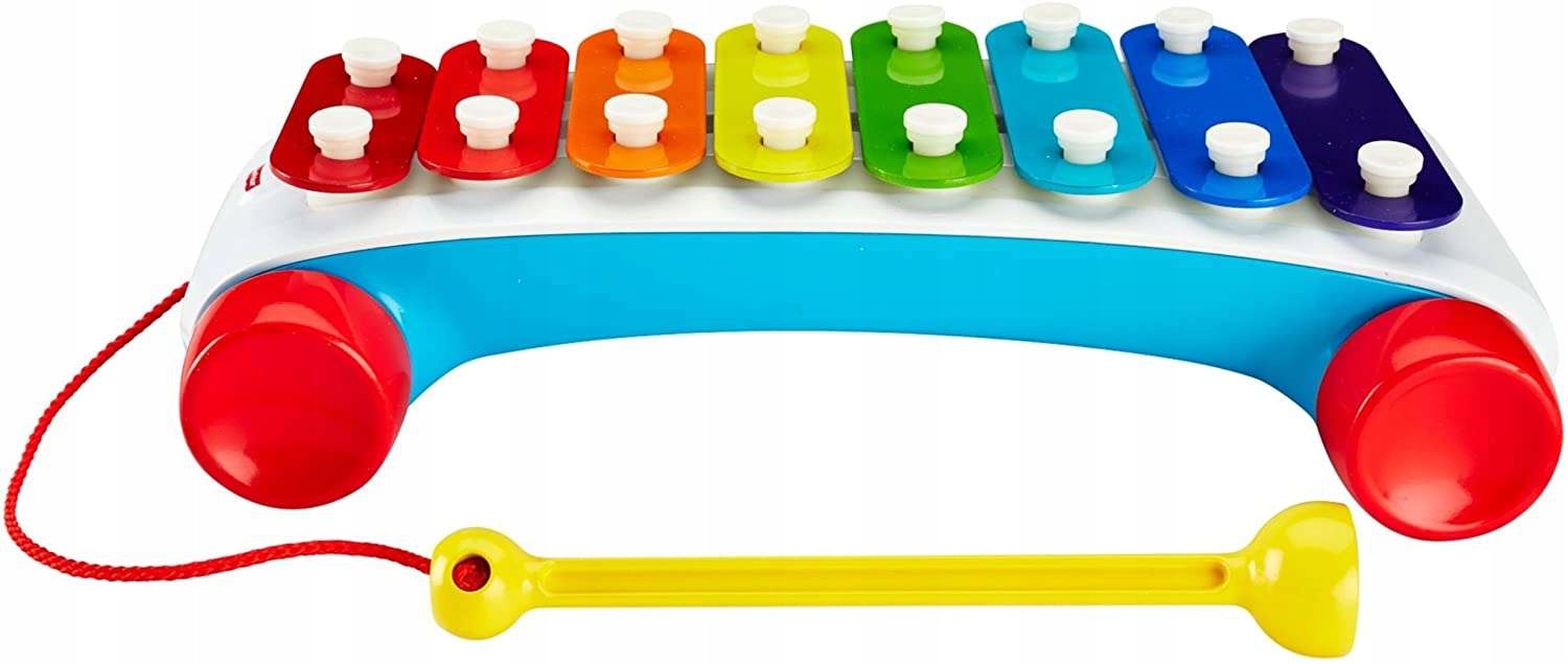 Cymbałki Fisher-Price® to zabawka do ciągnięcia z 8 kolorowymi klawiszami zachęcającymi do odkrywania świata muzyki i tworzenia własnych melodii, co pomaga maluchom poczuć dumę ze swoich osiągnięć.