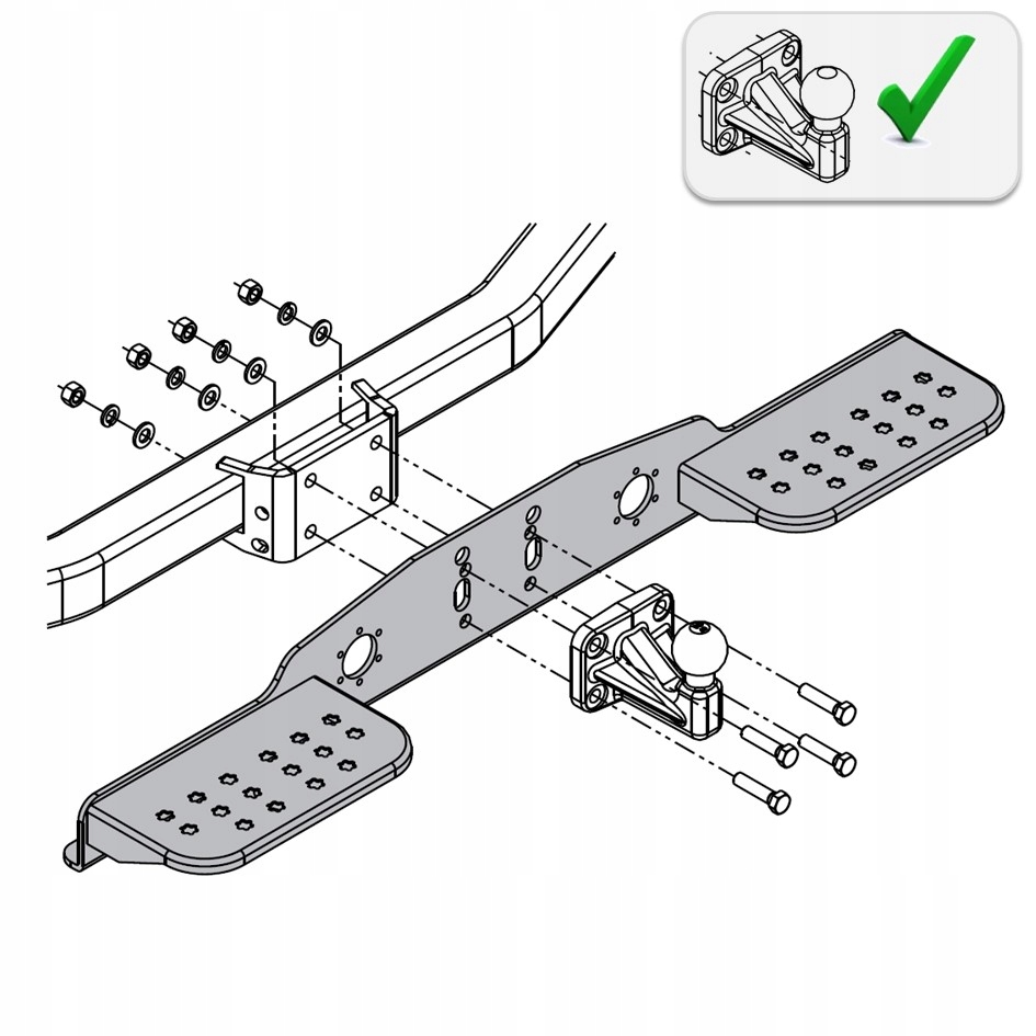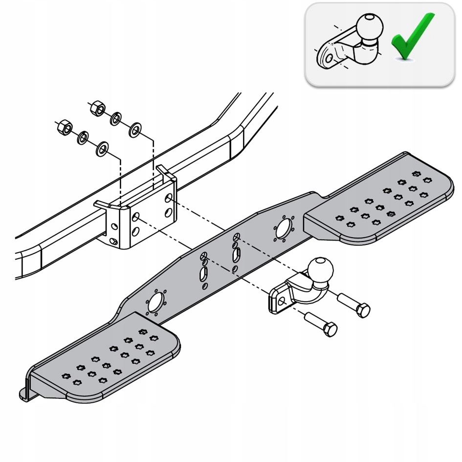 Эта ступень может быть установлена на всех моделях автомобилей, оснащенных буксирным крюком с фланцевая пуля.