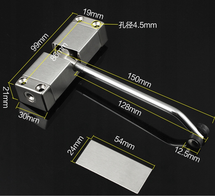 В комплект входят 4 винта для установки доводчика и гаечный ключ настройки силы закрытия.
