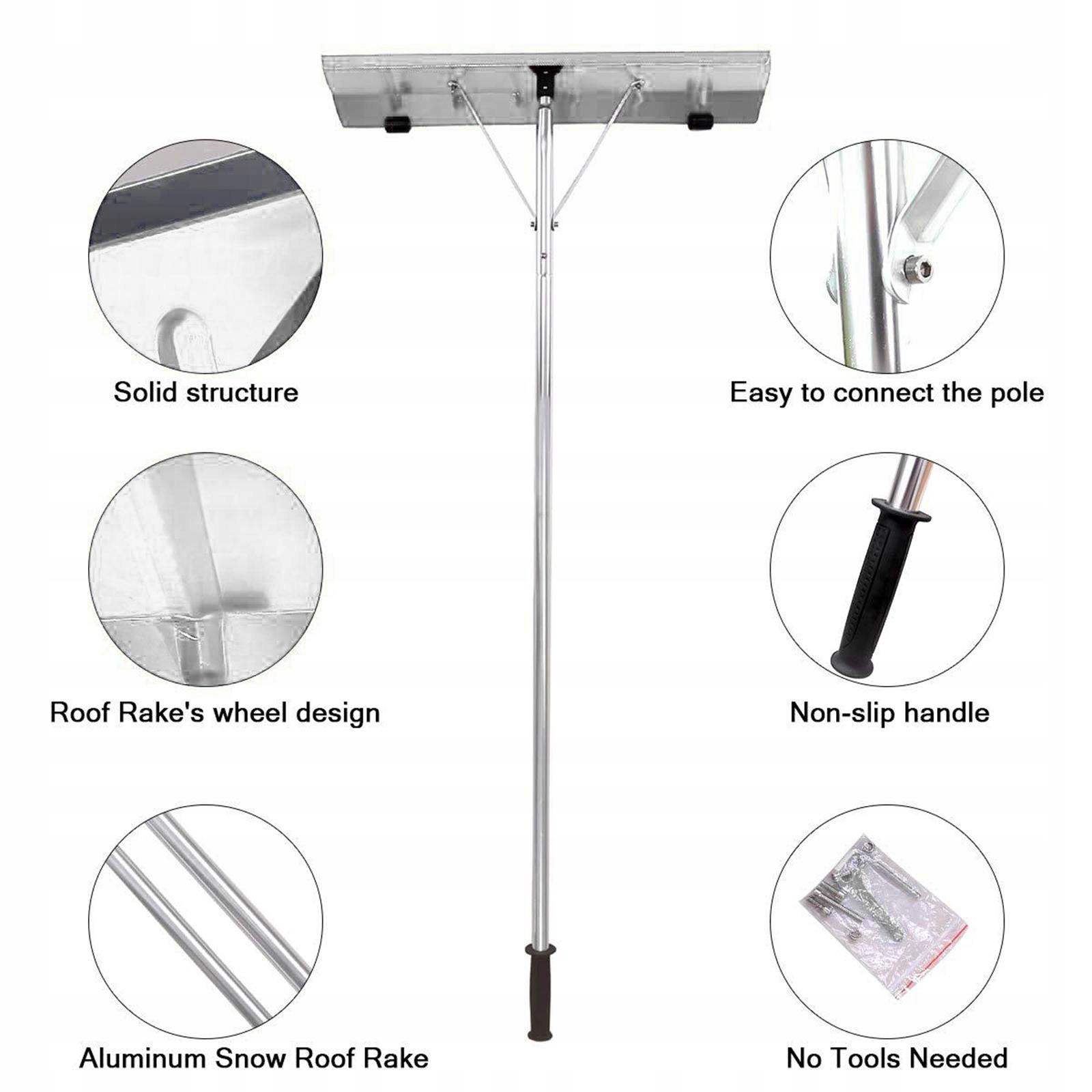 [Materiał Premium]: Grabie dachowe do usuwania śniegu wykonane są z wysokiej jakości stopu aluminium, mocne i solidne, trwałe.