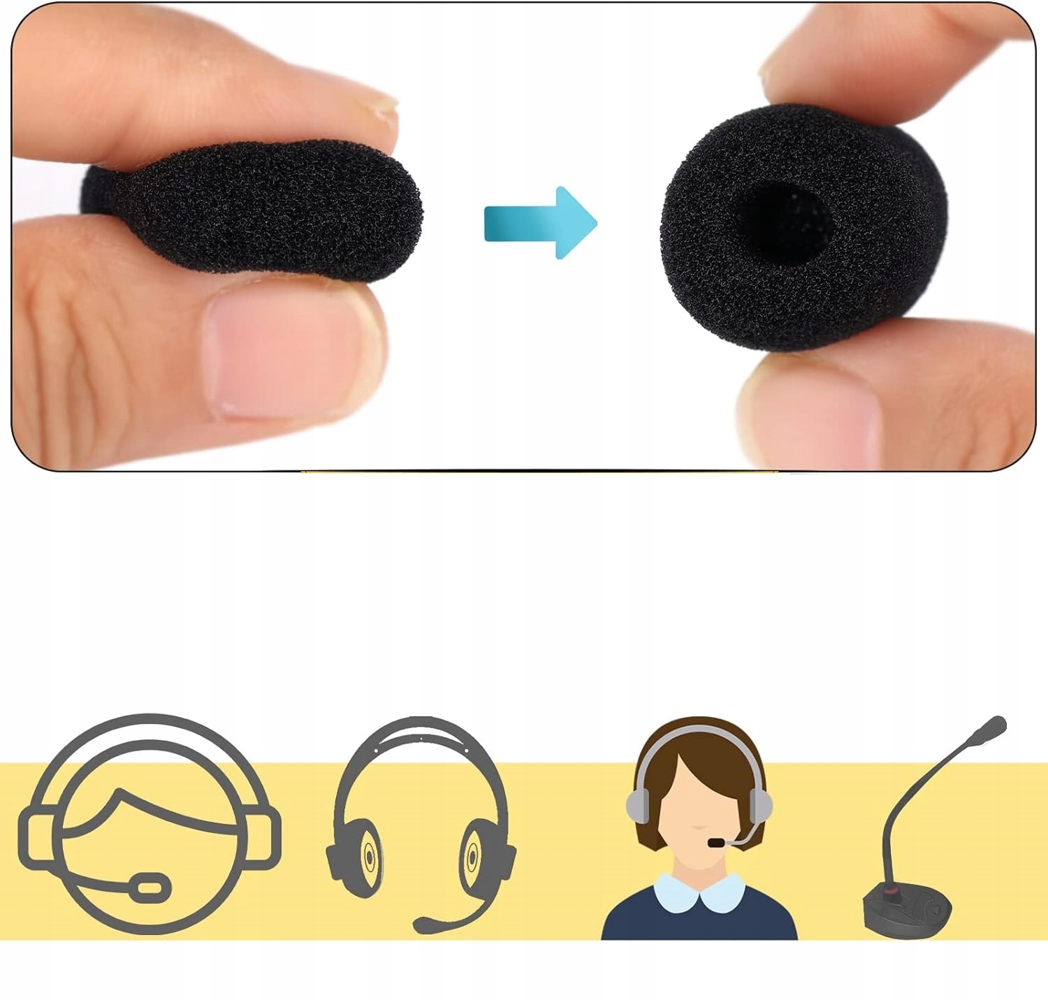 Gąbka jest elastyczna dzięki czemu można ją dopasować do mikrofonów o większej średnicy.