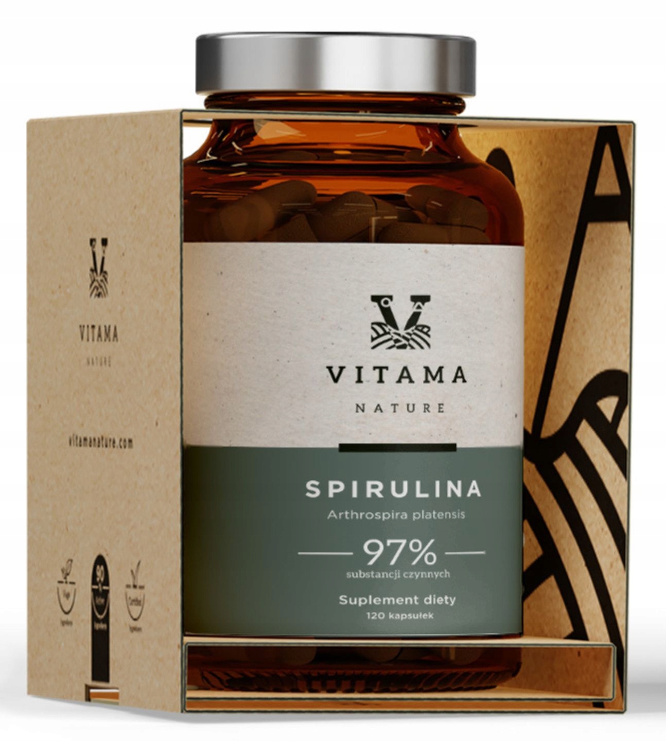 W suplemencie diety Spirulina Vitama Nature znajduje się aż 97% substancji czynnej w każdej pojedynczej kapsułce.