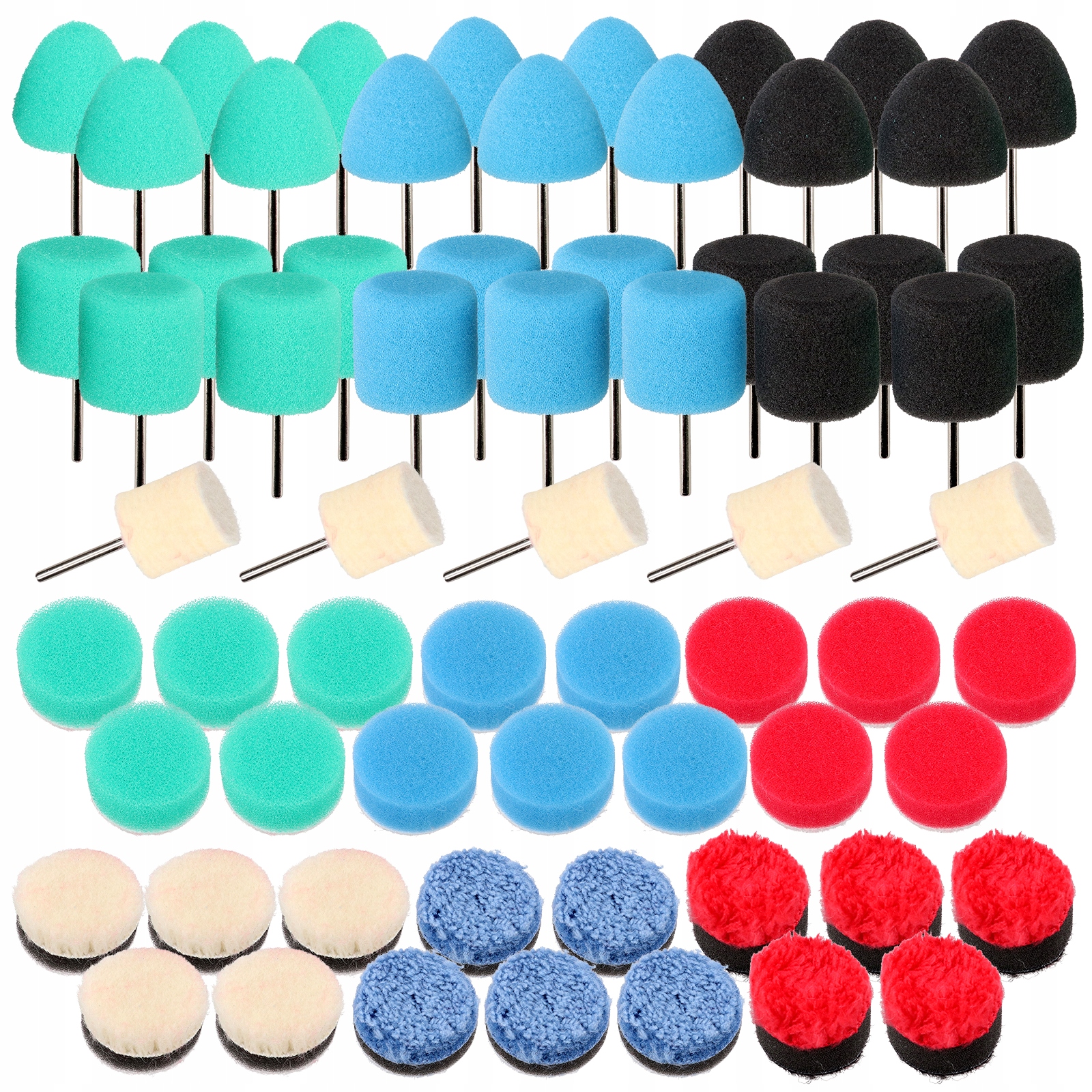 Zestaw zawiera różnego rodzaju akcesoria idealne do rozpoczęcia polerowania praktycznie każdego elementu samochodu. Gąbki o różnej twardości, wełny, filce, futra.