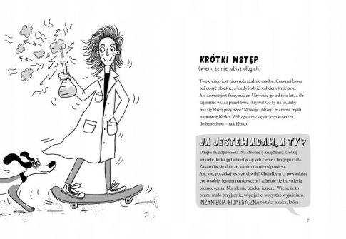Nadszedł czas na prawdziwe, niesamowite odkrywanie naszego najbliższego, choć zarazem najbardziej nieznanego towarzysza – ciała człowieka. To fascynująca wyprawa, pełna niezapomnianych wrażeń, w której nie ma miejsca na strach – jedynie na zdrową ciekawość i pragnienie poznania. Zamieńmy się na chwilę w miniaturkowych naukowców i zanurzmy się w nieustannie pracujące, tętniące życiem wnętrze naszej skóry, kości i mięśni.