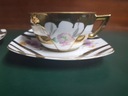 Filiżanka w kolorze bieli,z motywami róż.Złote paski.