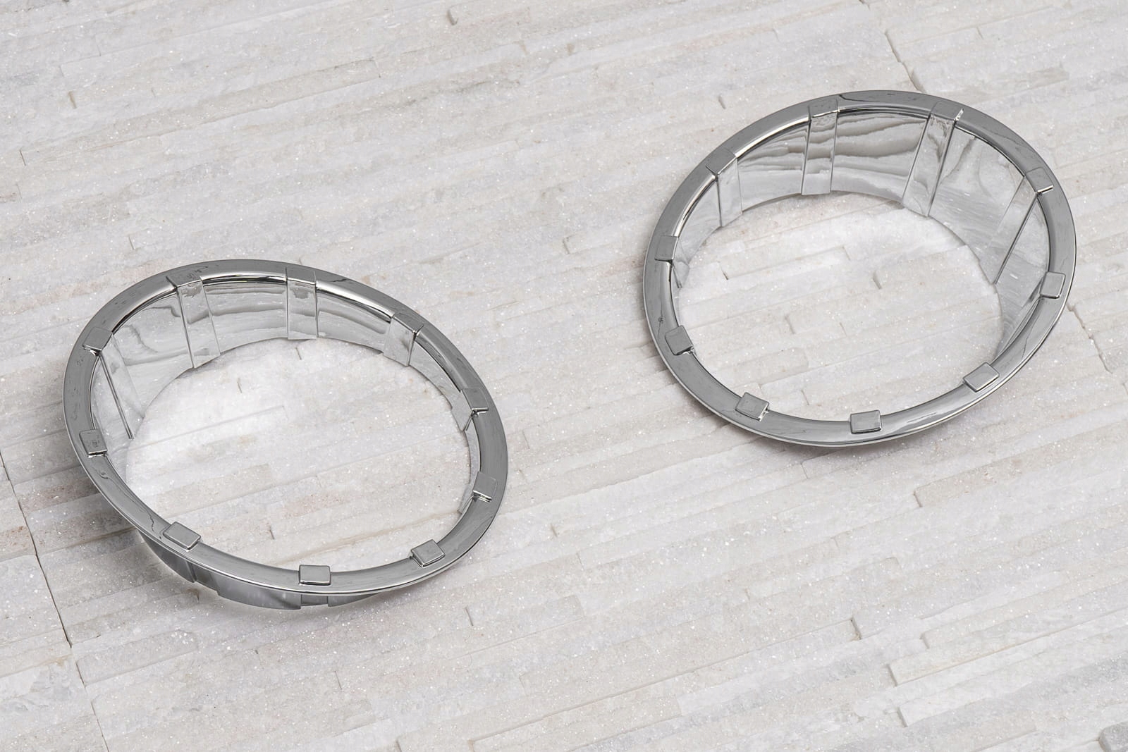 Nakładki podkreślają luksusowy profil samochodu. W subtelny sposób nadają charakteru. Elementy zostały wykonane z wysokiej jakości tworzywa ABS. W zestawie znajdują się dwie osłony na przednie lampy (prawa i lewa).
