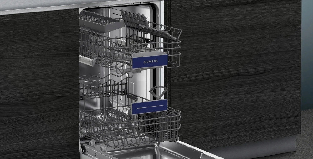 Zmywarka SIEMENS SR53ES24KE wyposażona jest w system zdalnego sterowania za pomocą aplikacji. Możesz teraz korzystać z aplikacji mobilnej Home Connect, aby połączyć się ze swoją zmywarką online oraz zdalnie wysyłać zapytania i monitorować stan swojego urządzenia. Konfiguracja zmywarki SIEMENS jest prosta, dzięki funkcji EasyStart/Program Assistant, która wybiera właściwe ustawienia dla każdego ładunku.