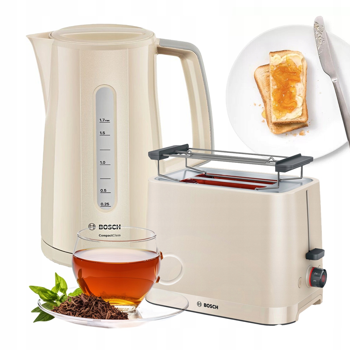 Toster Bosch MyMoment TAT3M127 to sprzęt, który wzbogaci Twoją kuchnie o funkcjonalność i styl. Wykończony w modnym, beżowym kolorze, harmonijnie wpasuje się w każdą aranżację. Dysponuje mocą 950 W, dzięki czemu Twoje tosty będą zawsze idealnie chrupiące. Ten model oferuje wiele praktycznych funkcji. Automatyczne centrowanie pieczywa gwarantuje równomierną opiekanie, niezależnie od grubości tostów. Ruszt na bułki pozwala na podgrzewanie bułek czy rogalików, a funkcja rozmrażania umożliwi Ci korzystanie z tostera bez konieczności wcześniejszego rozmrażania pieczywa. Toster został wyposażony w wyjmowaną tackę na okruchy, co ułatwia utrzymanie czystości, a funkcja High Lift pozwala bezpiecznie wyjąć nawet niewielkie kromki czy tosty. Toster Bosch MyMoment TAT3M127 to połączenie funkcjonalności i nowoczesnego designu, które z pewnością spełni oczekiwania najbardziej wymagających użytkowników.