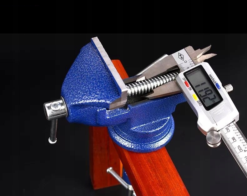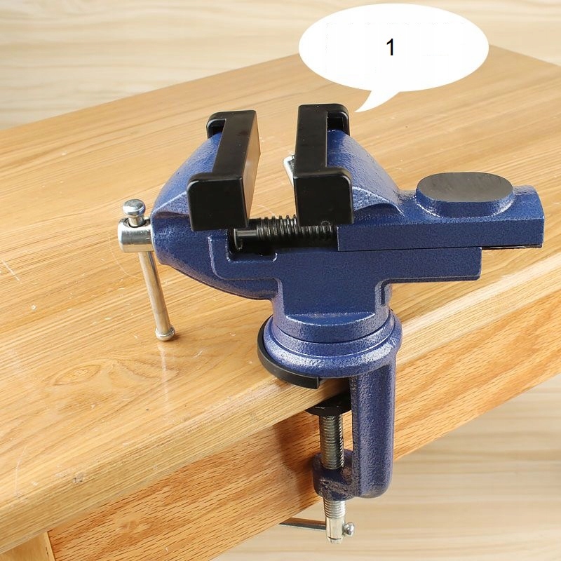 Imadło modelarskie, obrotowe 80# wraz z zestawem nakładek ochronnych na szczęki oraz na mocowanie do blatu roboczego.