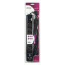 Listwa przeciwprzepięciowa z 3-metrowym kablem umożliwia podłączenie 6 urządzeń elektrycznych o łącznym poborze mocy 3680W. Gniazda typu F Schuko) posiadają uziemienie. Zasilanie można wyłączyć dwutorowym, podświetlanym wyłącznikiem głównym. Urządzenie skutecznie zabezpiecza podłączony sprzęt przed skokami napięcia spowodowanymi warunkami atmosferycznymi lub awariami sieci. Posiada 2 wejścia USB.