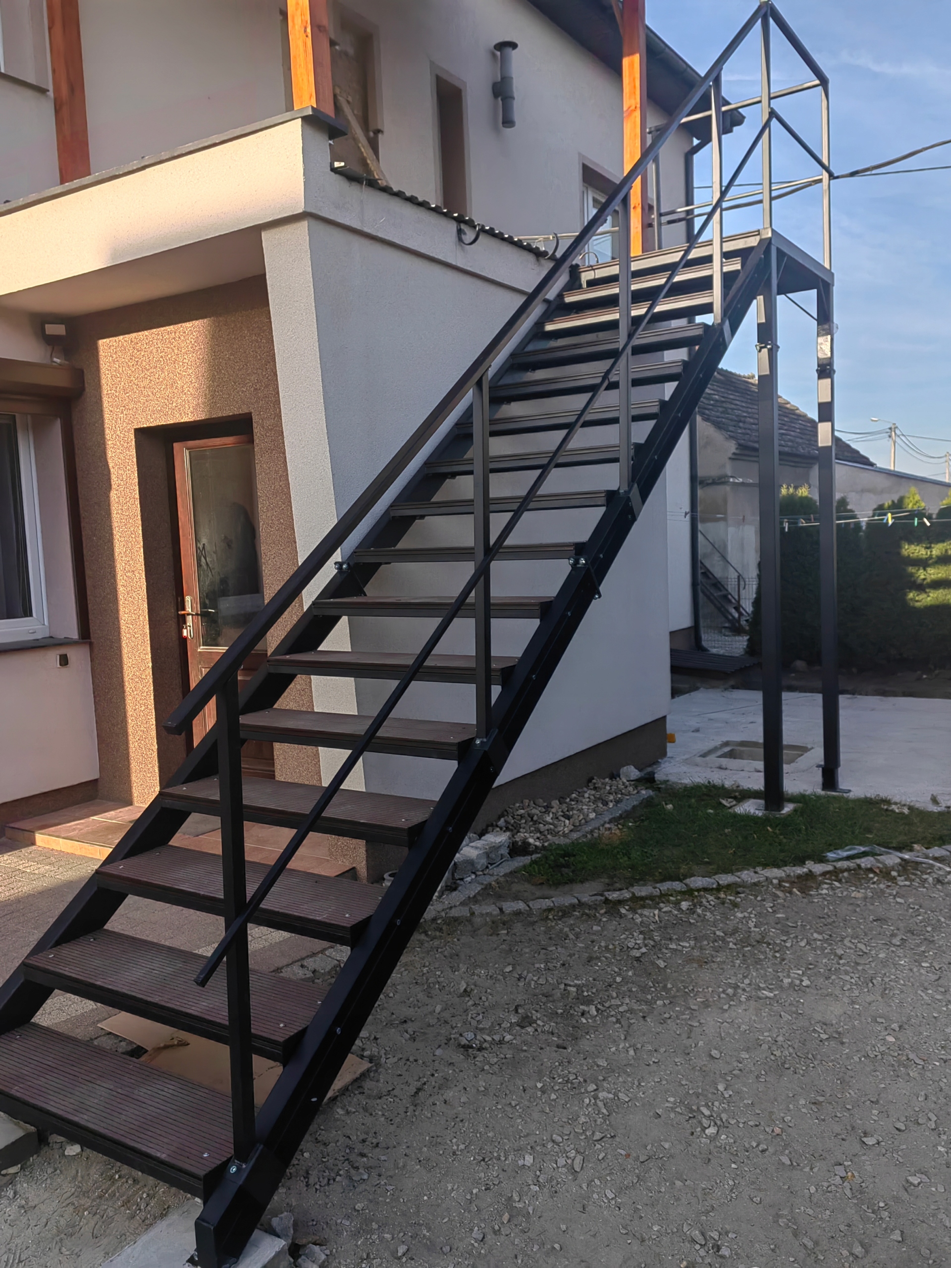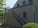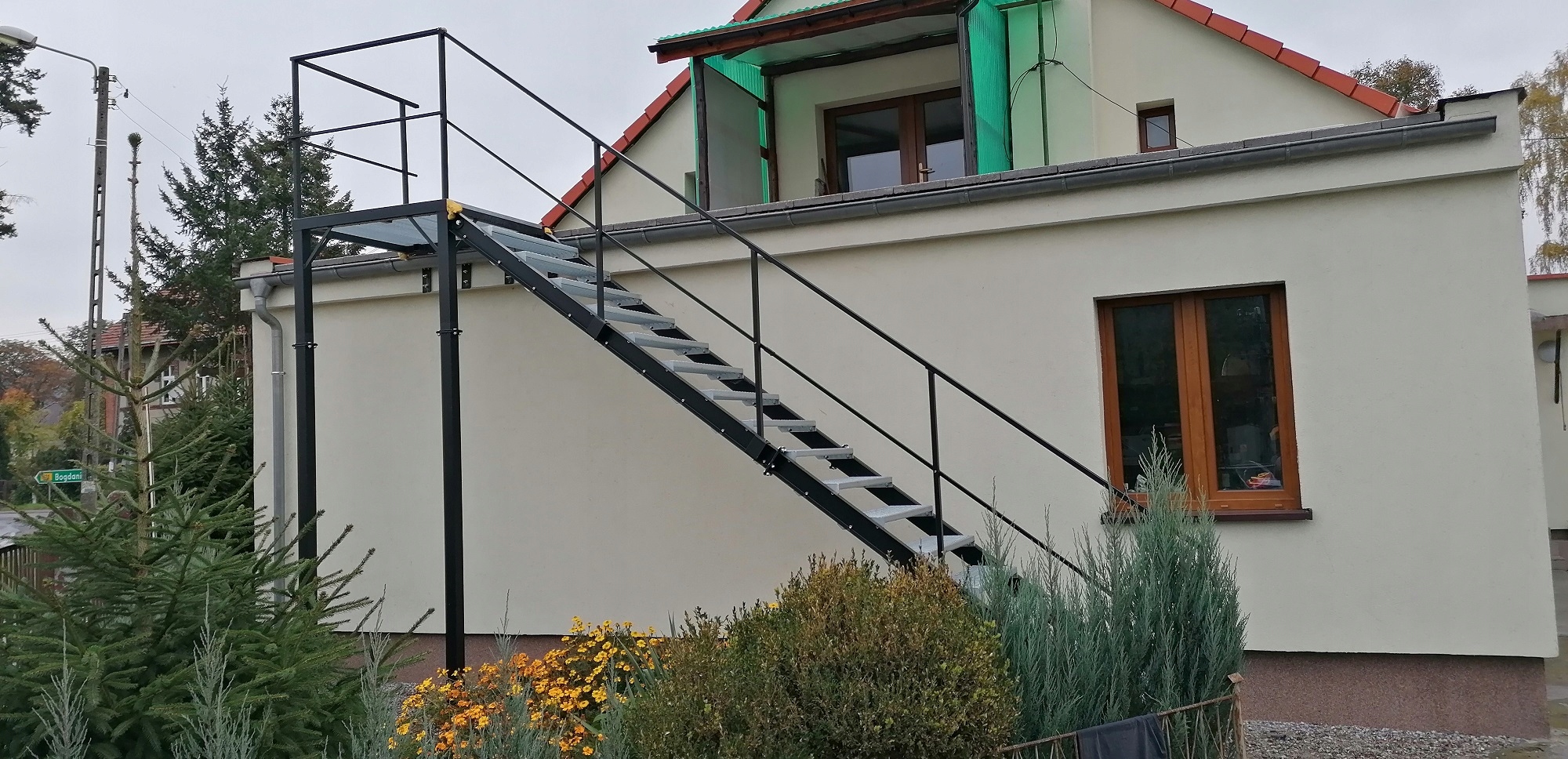 Schody na 12 stopni (wymiar stopni100x27cm) z barierką z jednej strony + Balkon/podest o wymiarach zewnętrznych 113x120cm (113cm to szerokość całkowita podestu a 120cm to długość podestu) z barierką