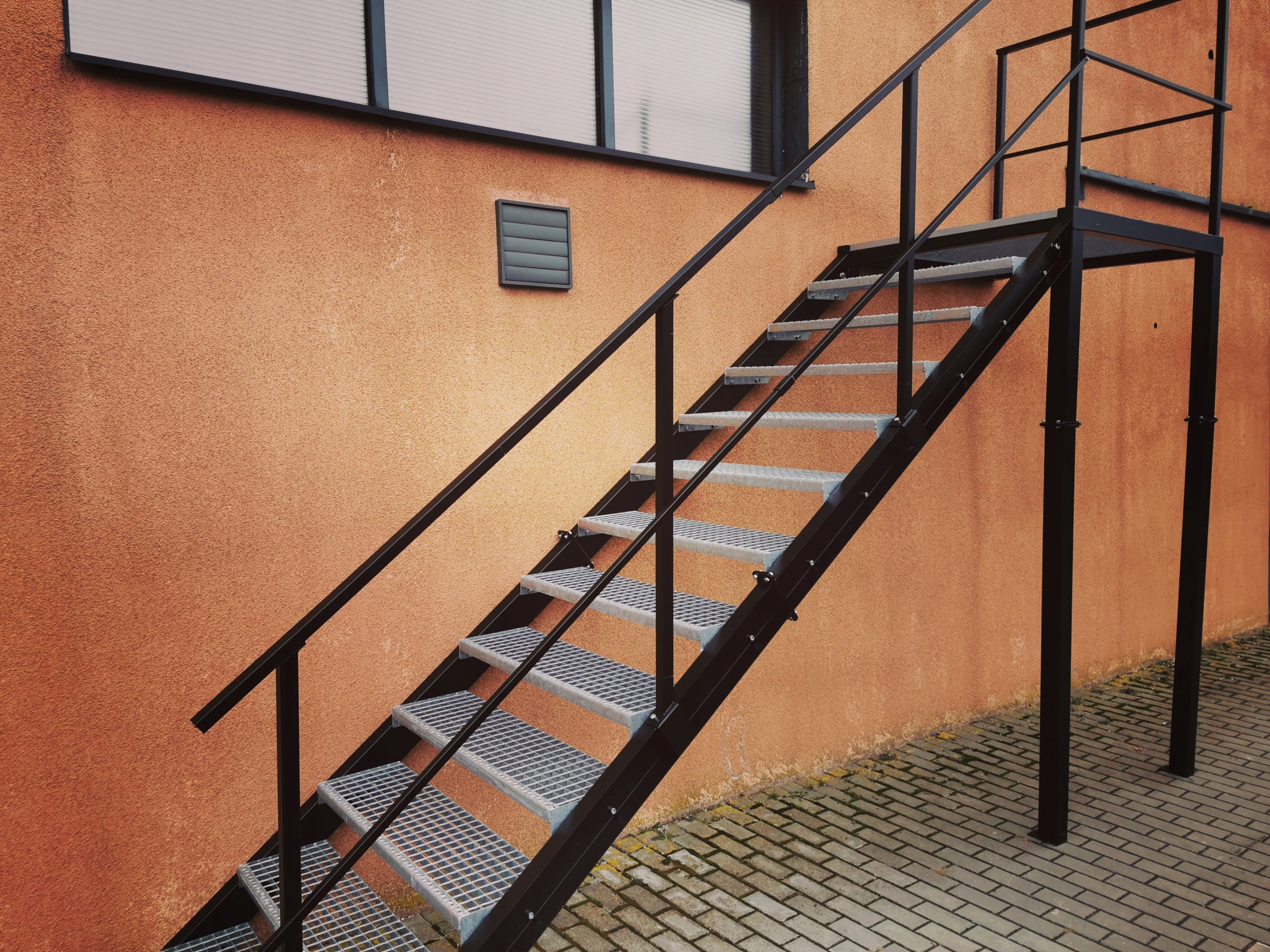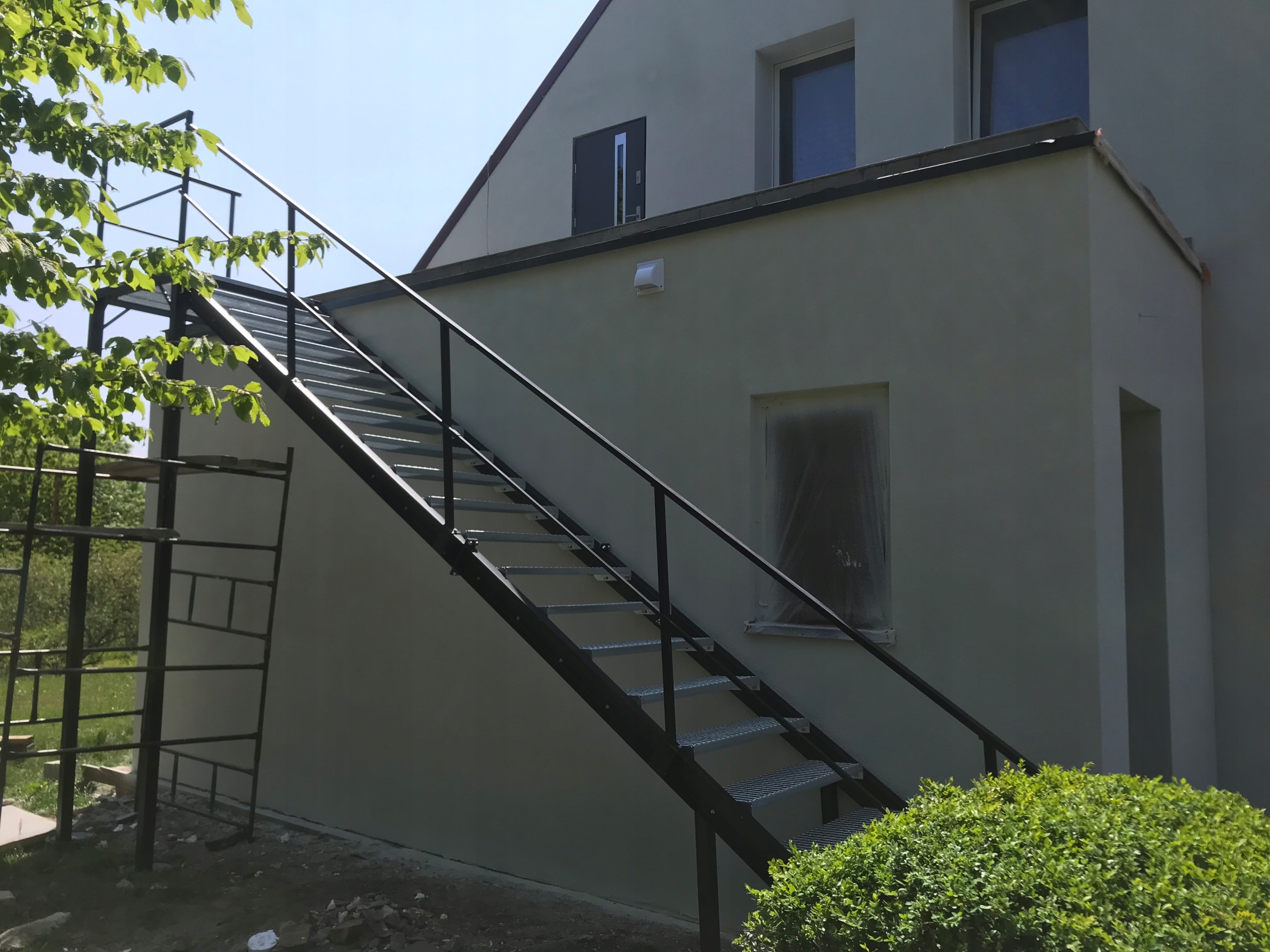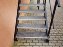 Stopnie i wypełnienie podestu sa wykonane z mocnej ocynkowanej kraty wema sprawiają że schody są antypoślizgowe, wytrzymałe i praktyczne. Nie zalega na nich woda, śnieg, kurz