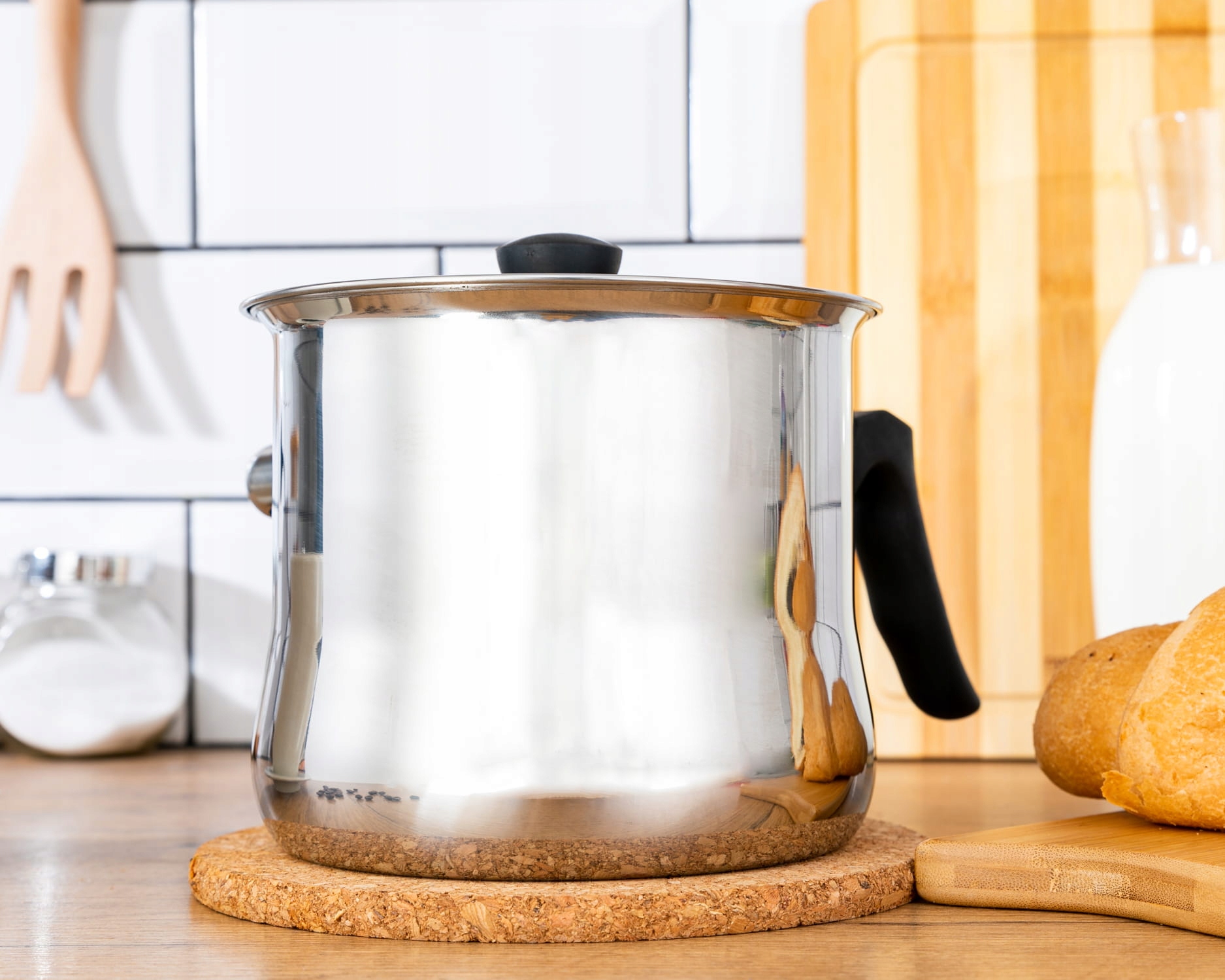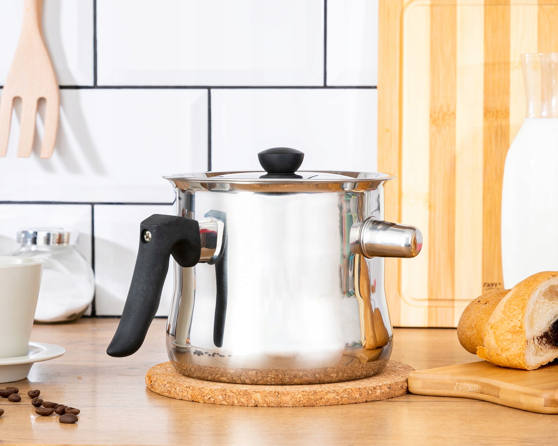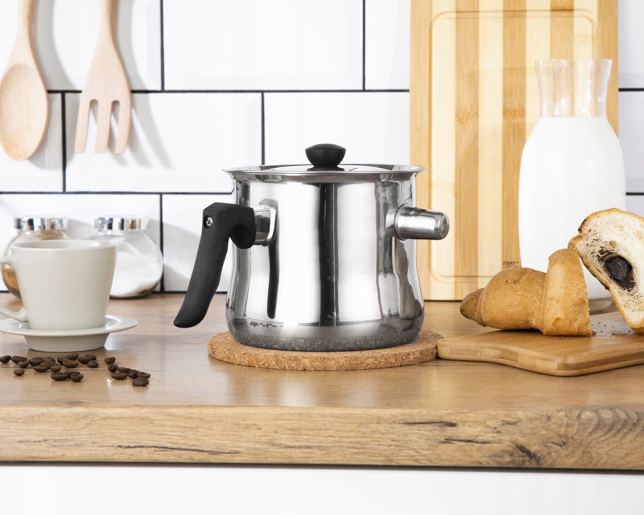 GARNEK DO MLEKA 2L Z GWIZDKIEM GAZ INDUKCJA STALOWY DO GOTOWANIA MLEKA HIT