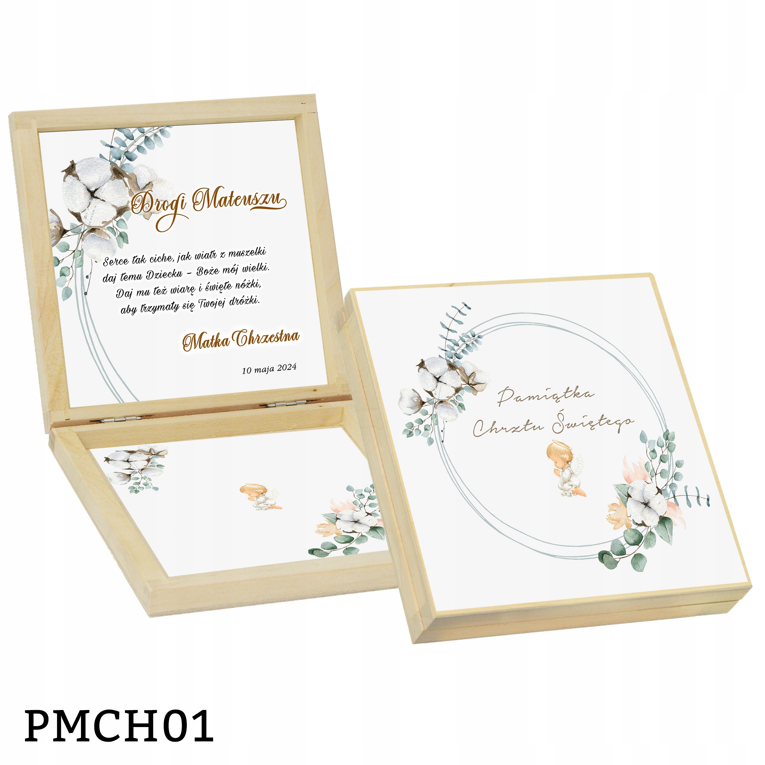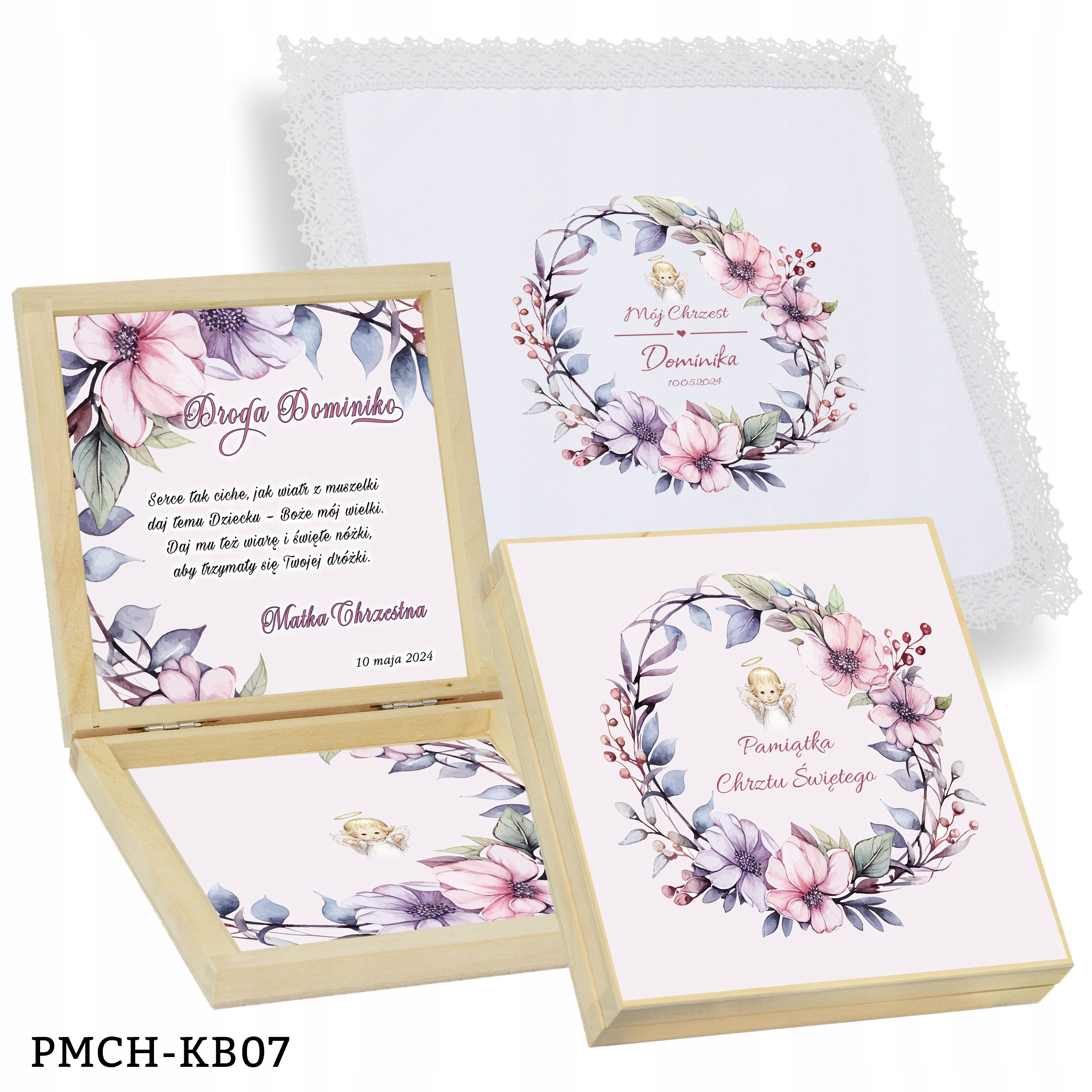 Pudełko z szatką : wzór PMCH-KB01 / dedykacja nr 5 / nagłówek: Kochana Wiktorio / Matka Chrzestna 01.01.2024