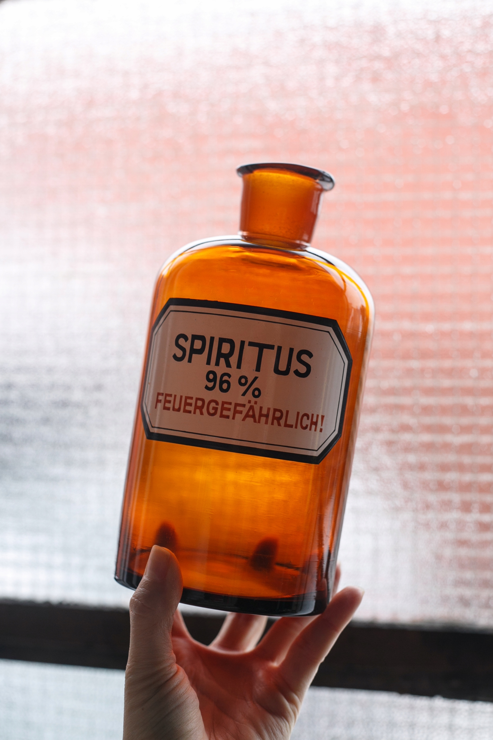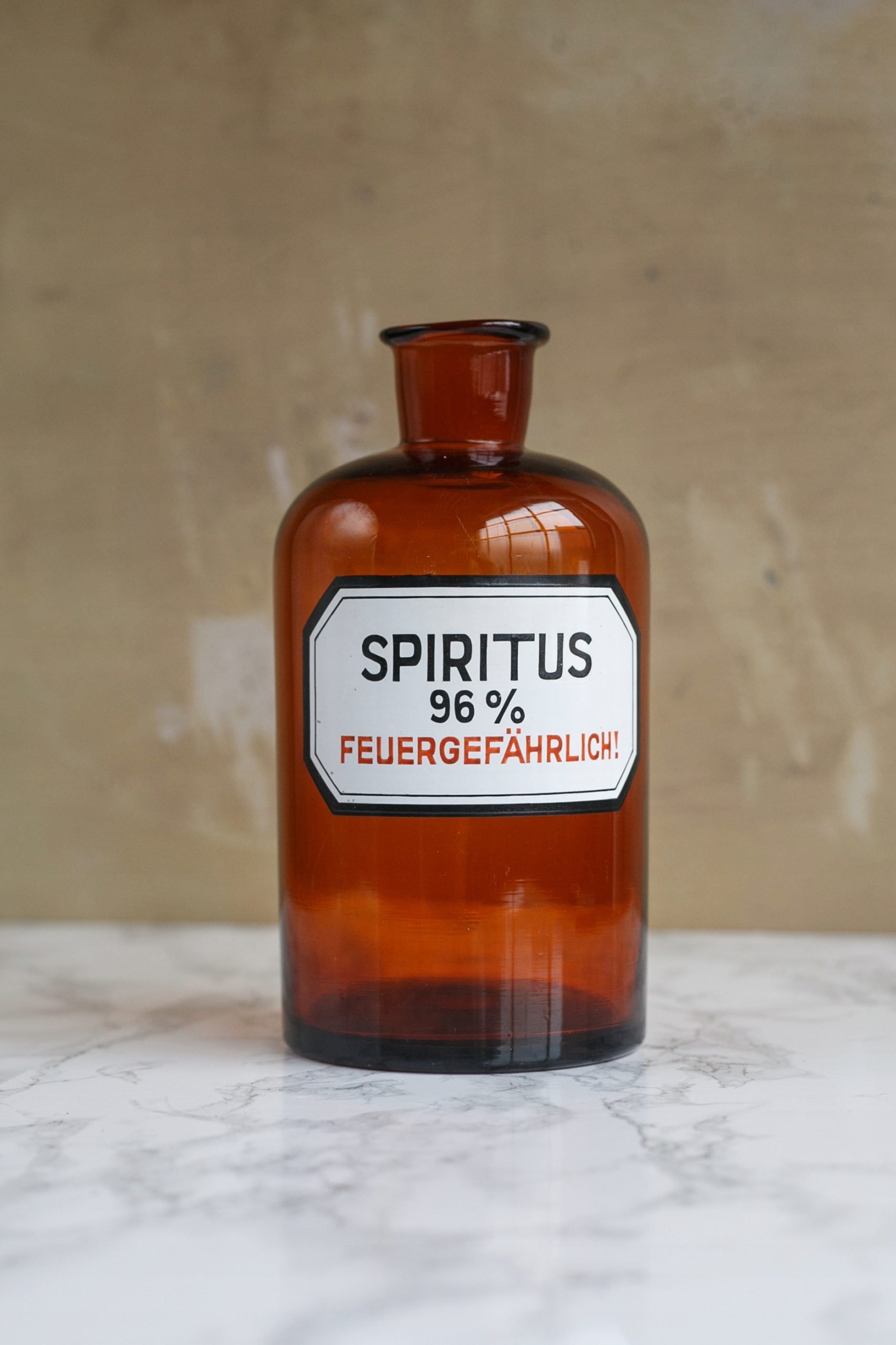 duża szklana butle apteczna vintage w pięknym bursztynowym kolorze, świetna jako samodzielna dekoracja, wazon na wiosenne gałązki, lub do użytku w kuchni, w środku czysta