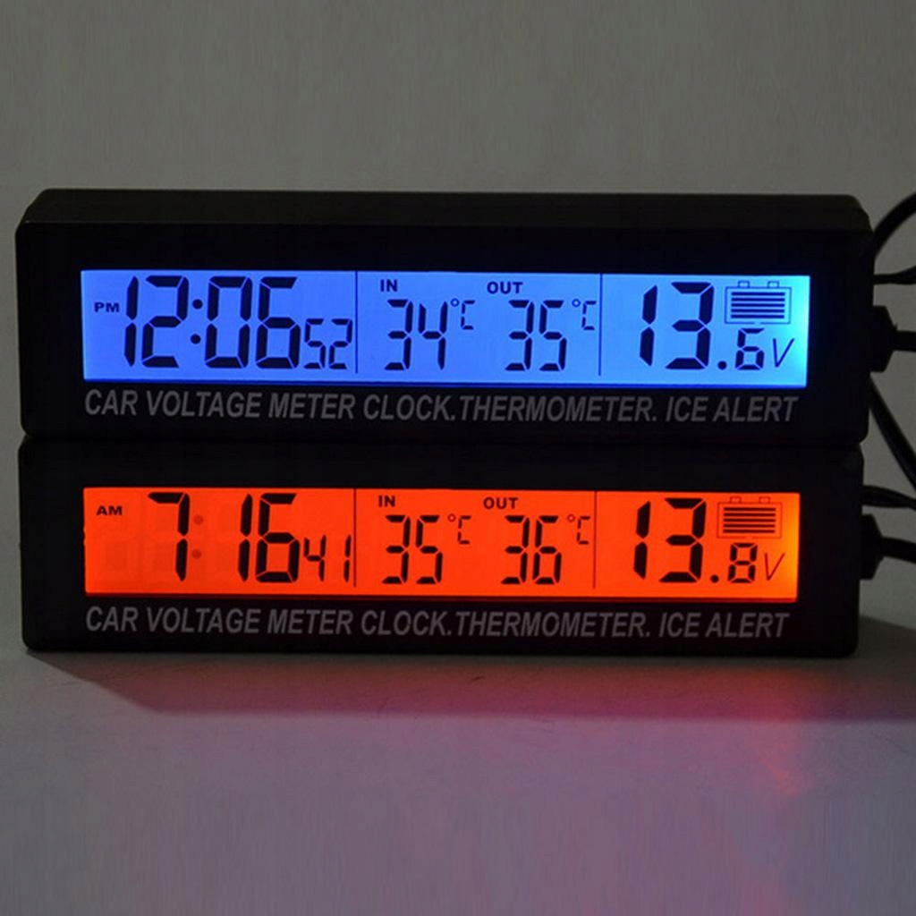 4 w 1 samochodowy wyświetlacz LCD z cyfrowym zegarem i termometrem, miernik napięcia i temperatury