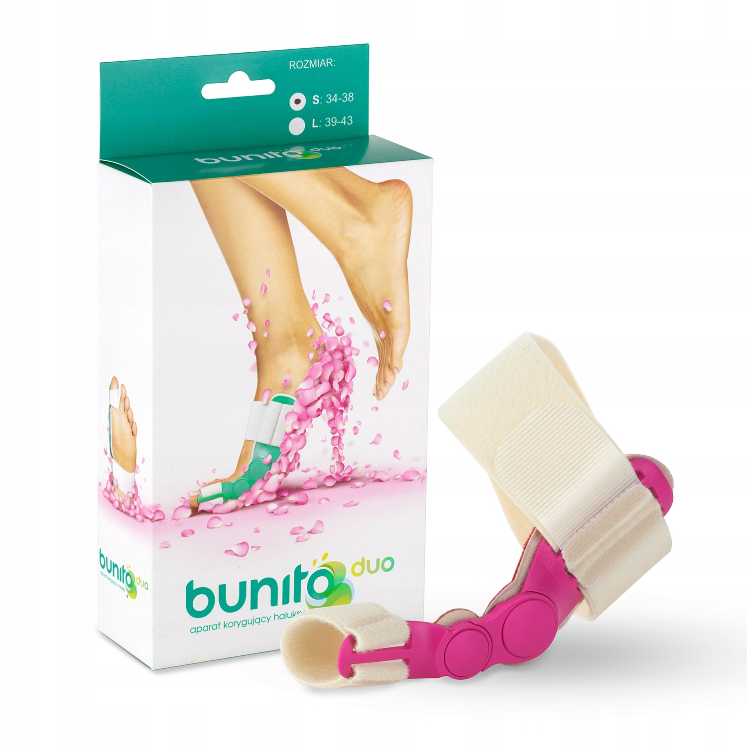 Aparat na haluksy Bunito Duo jest przełomowym rozwiązaniem w korekcji palucha koślawego, zaprojektowanym z myślą o aktywnej korekcie nawet podczas chodzenia. Dzięki innowacyjnej konstrukcji z dwoma zawiasami, orteza do leczenia haluksów Bunito Duo umożliwia swobodne poruszanie się, eliminując ryzyko kompresji stawu śródstopno-paliczkowego i wspomagając powrót palucha do prawidłowej pozycji.