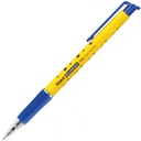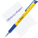 Długopis automatyczny w plastikowej obudowie w gwiazdki, klip i gumowy uchwyt w kolorze tuszu, trwała kulka z węglików spiekanych wolframu 0.7 mm. Super cienko-piszący opatentowany wkład Floating Ball ® szwajcarskiej firmy Premec.