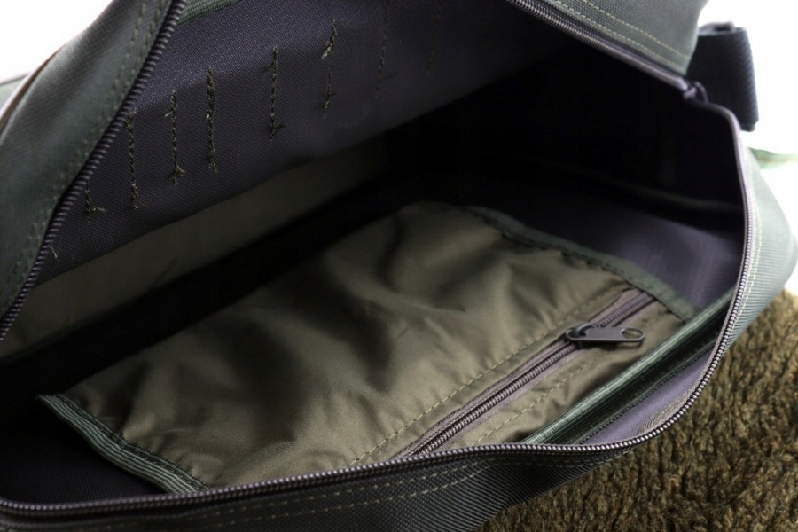 Oprócz głównej po zewnętrznej stronie znajduje się nieco mniejsza komora, również zamykana zamkiem błyskawicznym.