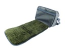 Na zewnętrznej stronie posiada zamykaną kieszeń. Po rozłożeniu może służyć jako siedzisko.