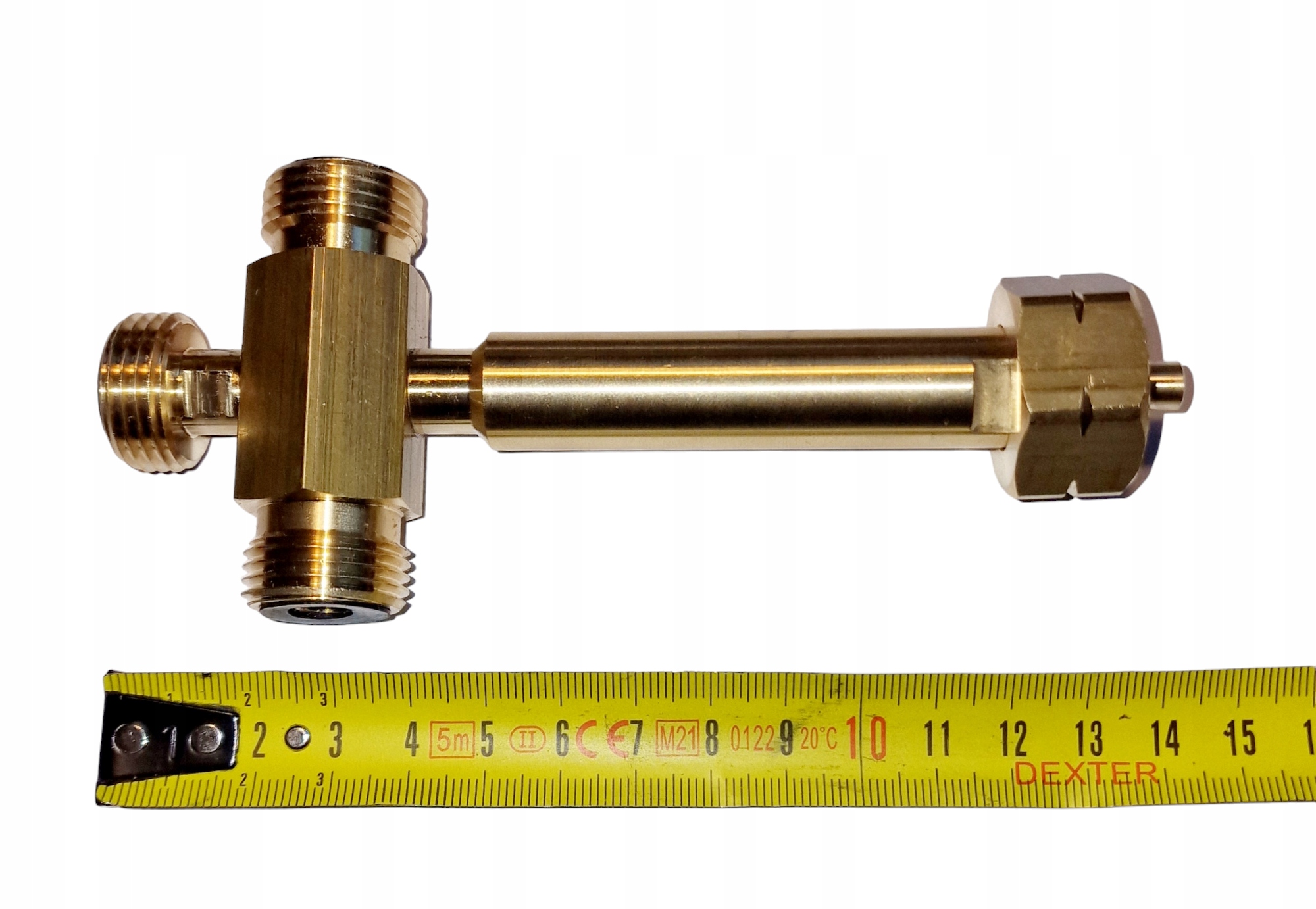 Czwórnik posiada jedno złącze 21,8L wew na butlę i trzy złącza 21,8L zew