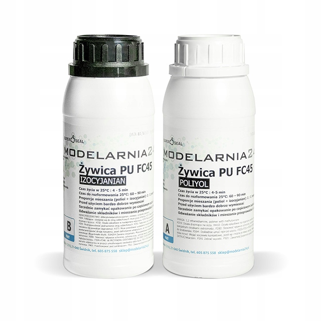 Żywica RUNTOP FC45 jest to szybko utwardzalna żywica poliuretanowa do odlewania elementów cienkościennych jak i modeli o różnych grubościach, znakomicie nadaje się do napełniania różnymi wypełniaczami. Idealnie nadaje się do odlewnia części prototypowych, figurek, statuetek, modeli redukcyjnych, elementów dekoracyjnych czy architektonicznych, elementów produkcyjnych, form czy uchwytów, sprzętu wędkarskiego np. woblerów, itd… Żywica RUNTOP FC45 idealnie nadaje się do odlewania w formach silikonowych z silikonów kondensacyjnych takich jak MM911, MM918, MM922, MM928, MM940 jak i addycyjnych takich jak XIAMETER 4234-T4 lub XIAMETER 4250-S Kit Green.