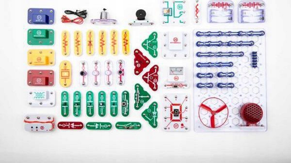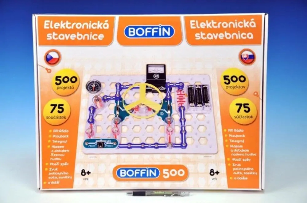 Zestaw elektroniczny Boffn I 500 zawiera 75 elementów, z których można zbudować następujące projekty: