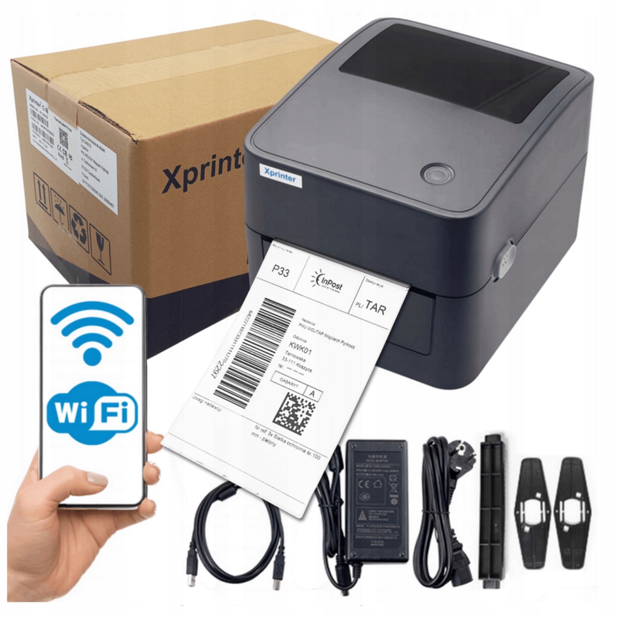 Drukarka termiczna Xprinter, doskonały wybór dla firm chcących usprawnić i ułatwić nadawanie paczek, drukuj bezpośrednio na samoprzylepnych etykietach, po prostu kliknij drukuj i naklej etykietę na paczce.