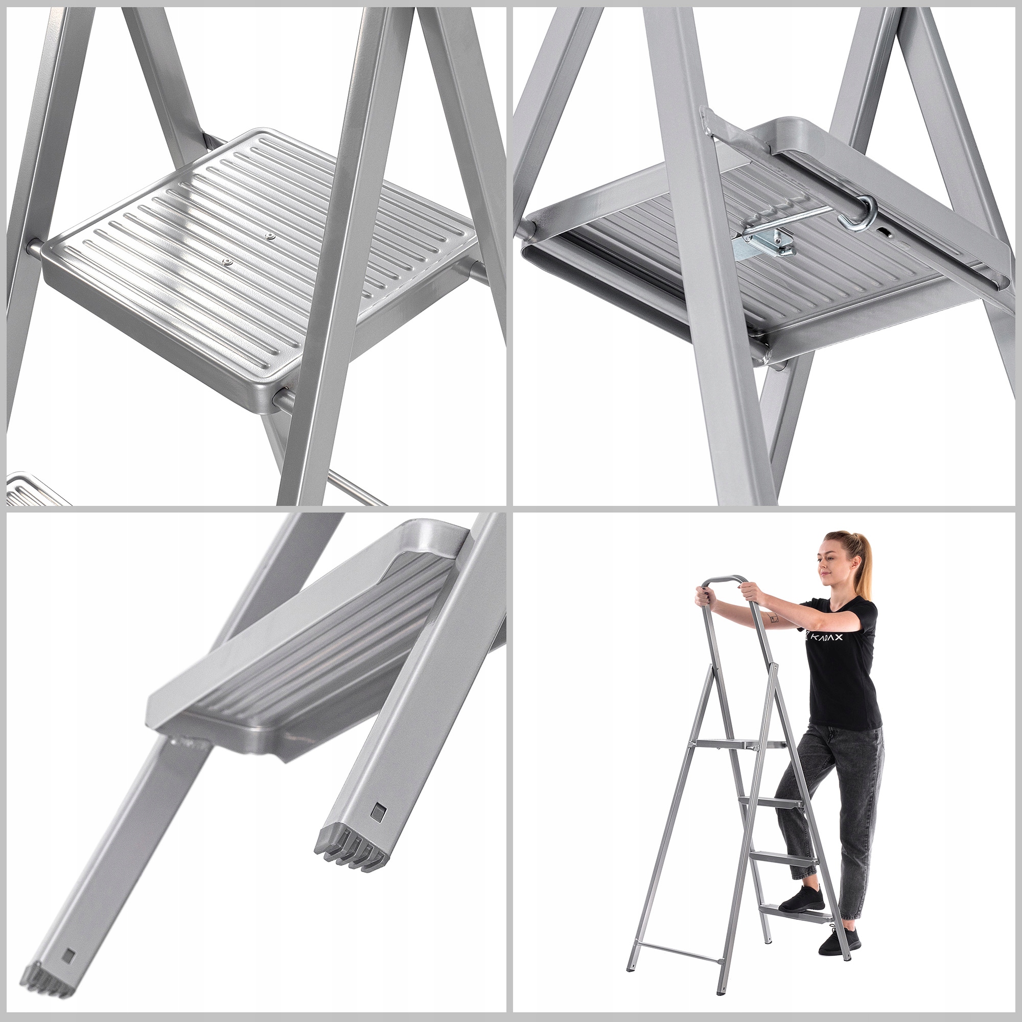✅WYTRZYMAŁA - wykonana z wysokiej jakości stali, drabina marki Kadax jest w stanie wytrzymać udźwig do 150 kilogramów.