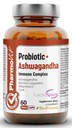 Probiotic + Ashwagandha Immuno Complex to suplement diety w którym zastosowano synergiczne połączenie ashwagandhy, bakterii probiotycznej w postaci Bacillus Coagulans oraz cynku i witaminy D. Bacillus coagulans to bakteria występująca naturalnie we florze bakteryjnej jelit. Każda kapsułka zawiera "uśpione” zarodniki tych bakterii, które uaktywniają się dopiero w kwaśnym środowisku żołądka, dzięki czemu Bacillus dociera i namnaża się dopiero w jelitach. Cynk w postaci cytrynianu cynku oraz witamina D pomagają w prawidłowym funkcjonowaniu układu odpornościowego. Cynk dodatkowo pomaga w ochronie komórek przed stresem oksydacyjnym, a witamina D w utrzymaniu zdrowych kości. Ashwagandha wspiera funkcjonowanie układu oddechowego.