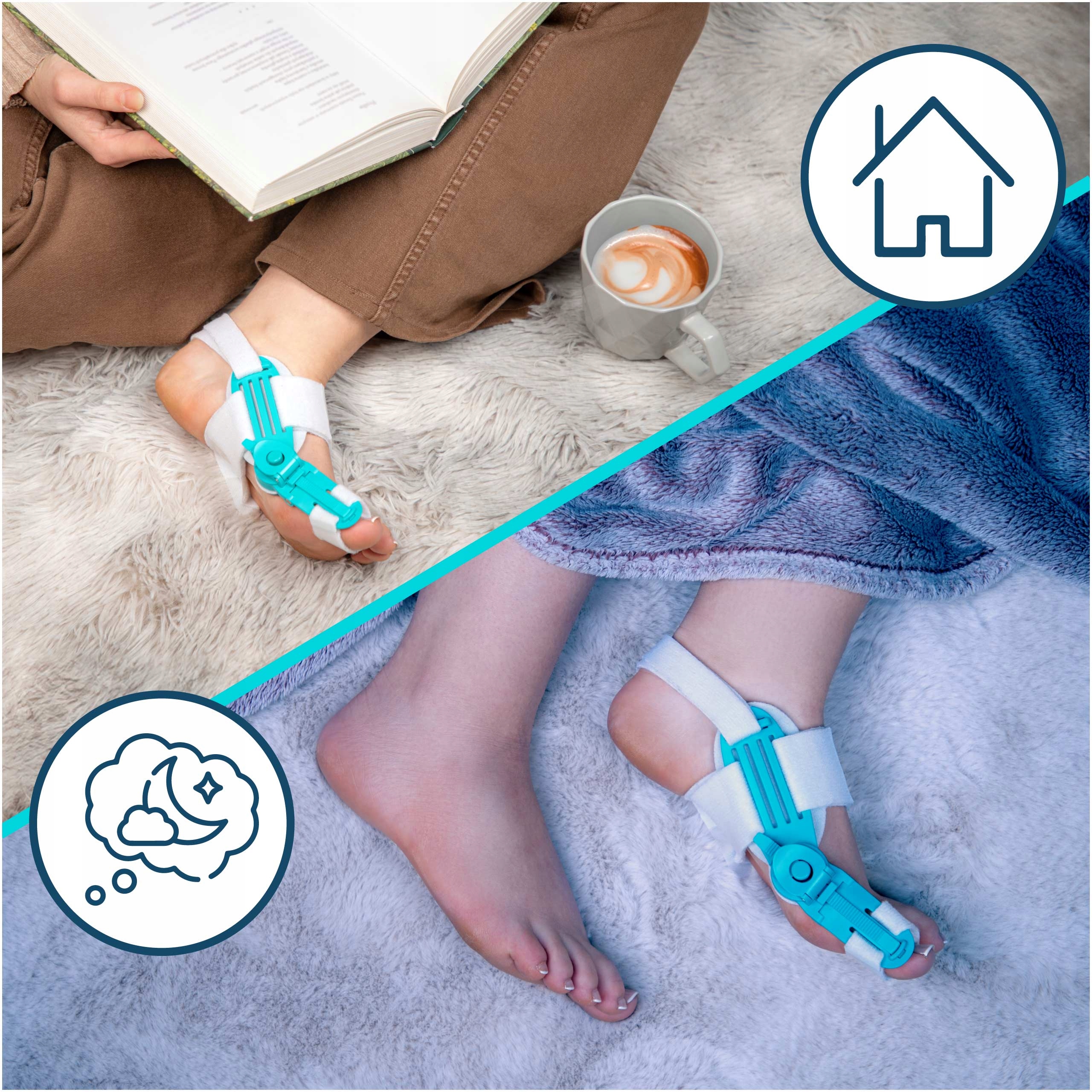 Aparat korekcyjny charakteryzuje się uniwersalnością i wygodą użytkowania. Pasuje na lewę oraz prawą stopę. Zapięcie na rzep umożliwia szybką regulację, zapewniając jednocześnie stabilizację oraz wygodę użytkowania.