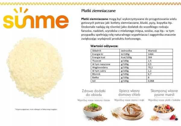 Płatki ziemniaczane mogą być wykorzystywane do przygotowania wielu gotowych potraw jak: kotlety ziemniaczane, kluski, pyzy, kopytka itp.