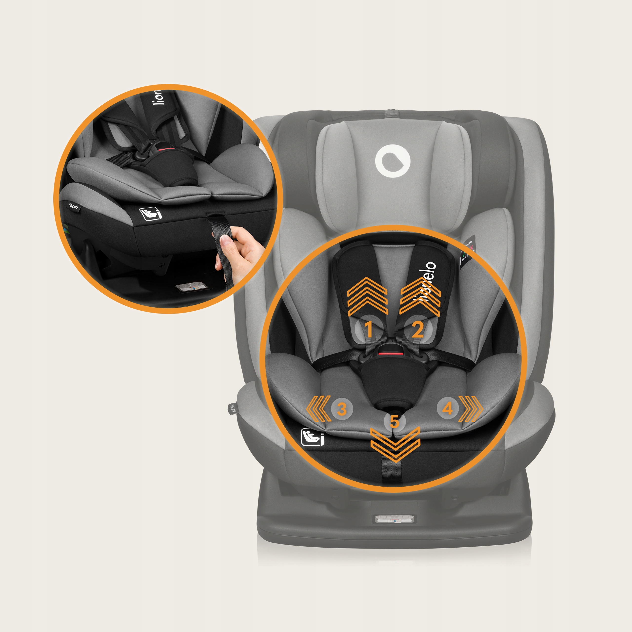 Znajdujące się w foteliku 5-punktowe pasy bezpieczeństwa utrzymują dziecko w prawidłowej pozycji, a system ochronnych nakładek powstał, aby ochronić wrażliwą skórę dziecka przed ewentualnym otarciem.