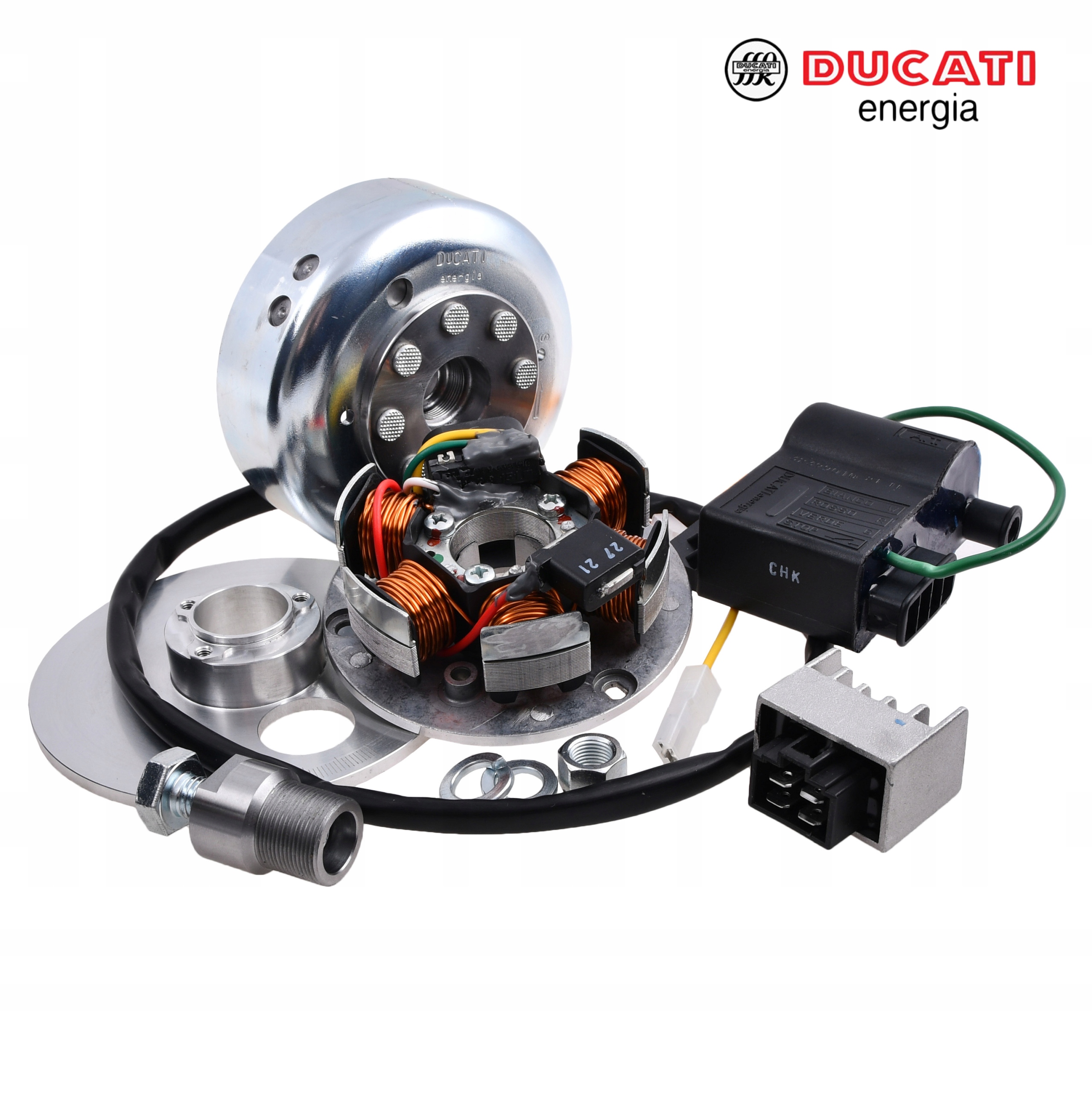 Oryginalny zapłon Ducati posiada wybitą nazwę producenta "Ducati Energia" na kole magnesowym, datę produkcji/partii naniesioną na impulsator oraz jest dostarczany z fabryczną zaplombowaną podstawką statora!