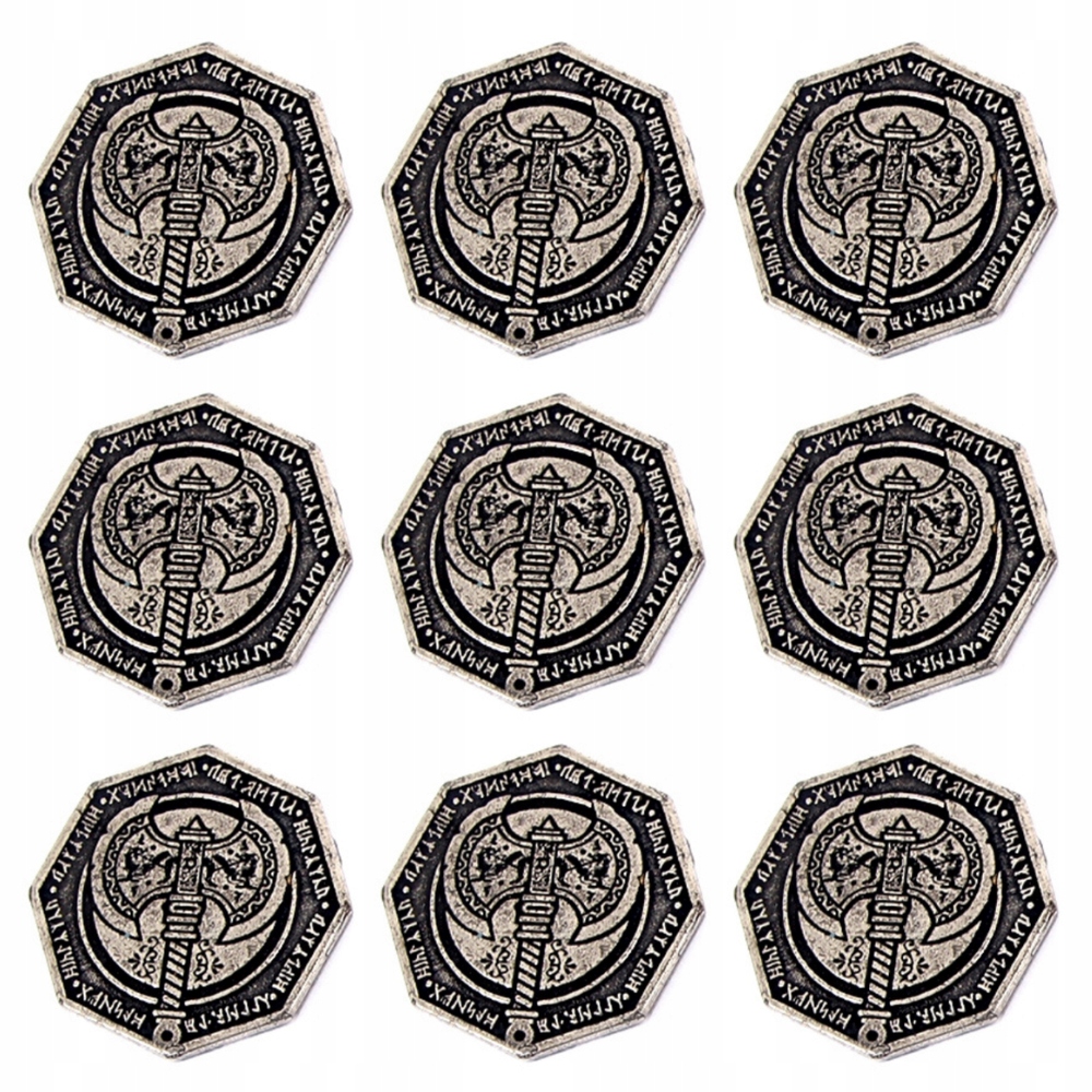 Wykonany ze stopów cynku zestaw 9 cudownych, ciężkich monet, które otrzymaliśmy w darach od siedmiu krasnoludzkich władców z ich kamiennych pałaców.