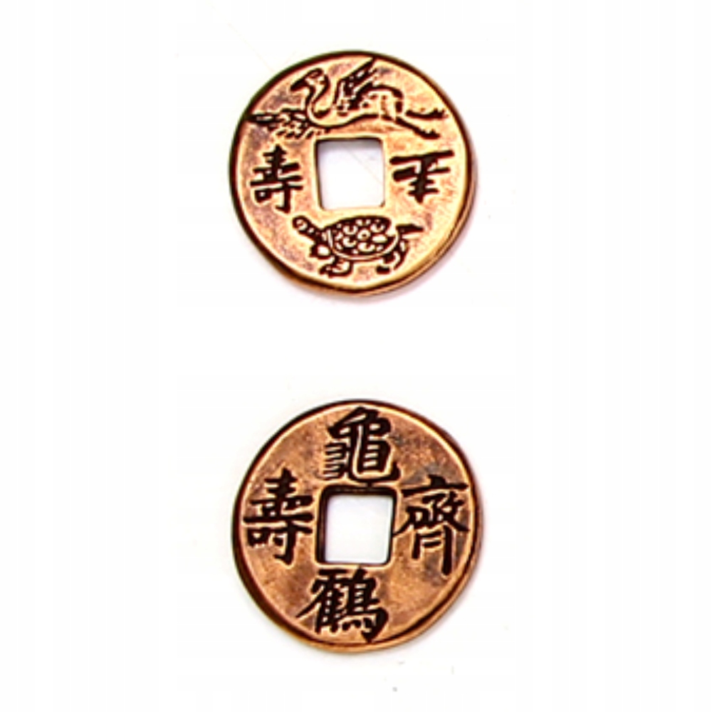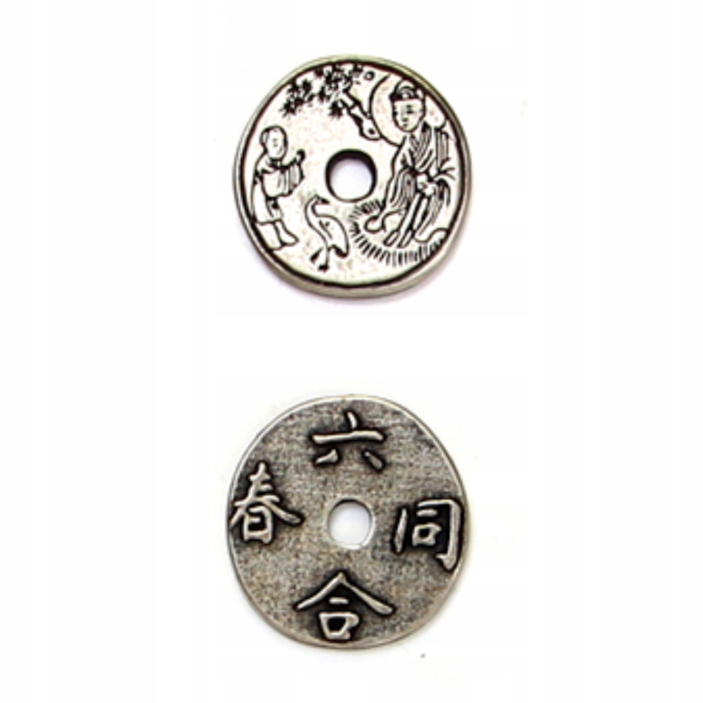 Wykonany ze stopów cynku zestaw 3 cudownych, ciężkich monet które zostały zainspirowane dalekowschodnią kulturą.