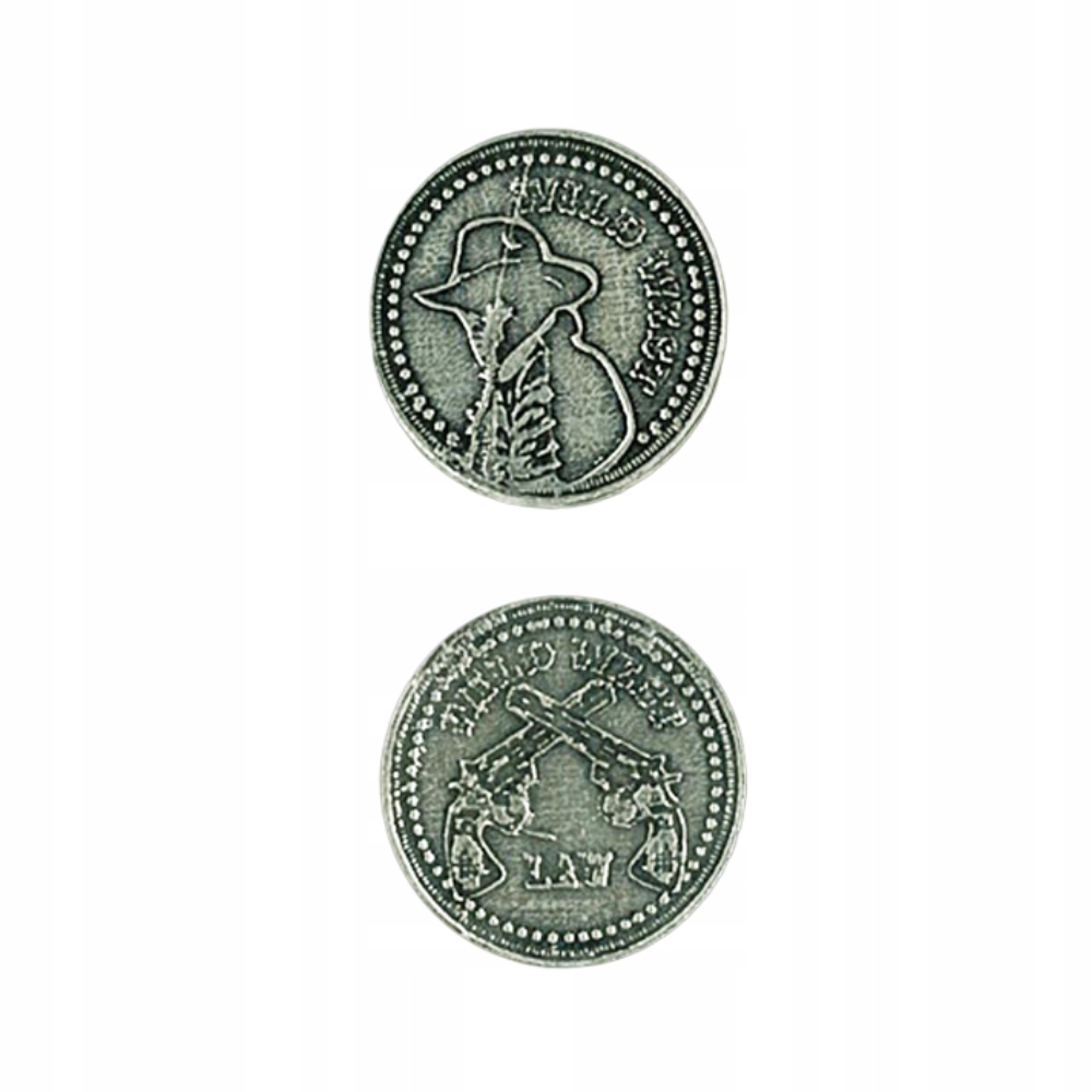 Wykonany ze stopów cynku zestaw 24 cudownych, ciężkich monet, który przedstawia motywy związane z dzikim zachodem.