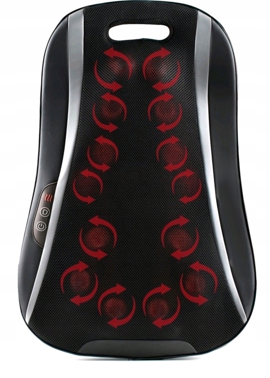 Inteligentny system napędzany przez dwa mechanizmy, porusza się ruchem okrężnym, masując kark, barki, plecy, talię.