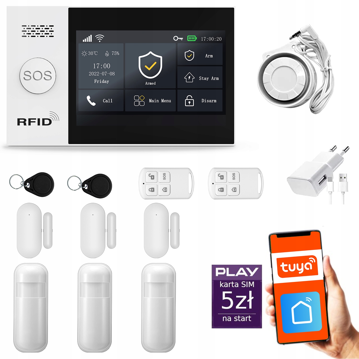Centrala alarmowa z kolorowym, dużym wyświetlaczem i z menu w kilku językach do wyboru Kompatybilna z aplikacją TUYA SMART, umożliwiająca stworzenie Smart Home (Inteligentnego Domu).