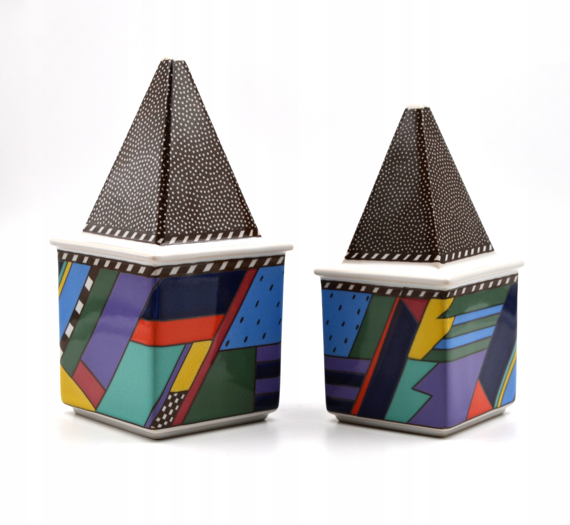 wymiary: wysokość 13,5cm x podstawa 6cm oraz wysokość 11,5cm x podstawa 5cm