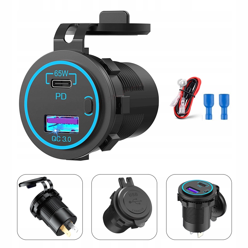 Ładowarka samochodowa usb c pasuje do pojazdów, takich jak samochód, ciężarówka, łódź, morski, kamper, motocykl, wózek golfowy, atv, suv i wszelkie inne kosze DC 12V/24V.
