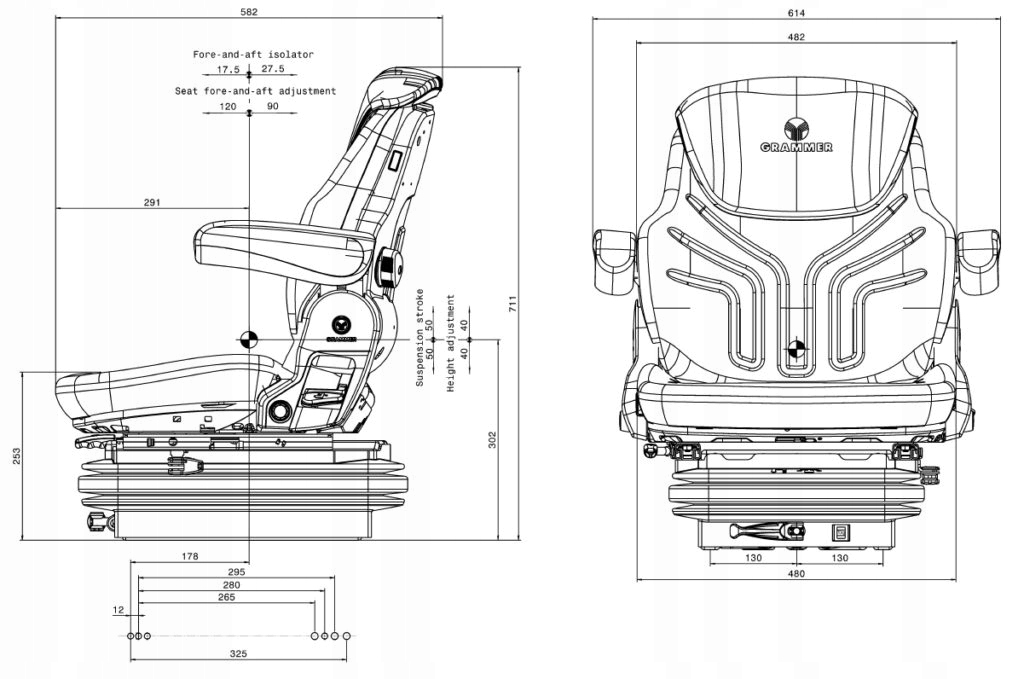 Maximo z podstawowym zawieszeniem mechanicznym nadaje się do standardowych ciągników. Aby fotel z amortyzacją mechaniczną był wygodny ciężar ciała musi być precyzyjnie ustawiony. Maximo Basic wyznacza nowe standardy komfortu zawieszenia w tej klasie. Wysokość siedziska może być ustawiona w trzech poziomach przez mechanizm blokujący.
