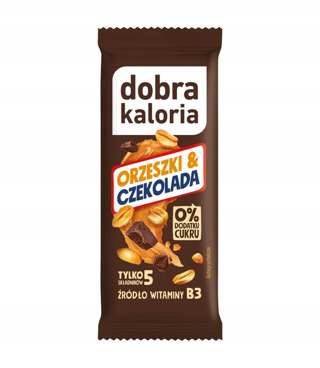 daktyle suszone (78 %), orzechy nerkowca (14 %), kakao o obniżonej zawartości tłuszczu (5 %), chrupki zbożowe (mąka kukurydziana, mąka ryżowa). Może zawierać orzechy, orzeszki ziemne, nasiona sezamu, zboża zawierające gluten oraz pestki owoców lub ich fragmenty. Bez dodatku cukrów. Zawiera naturalnie występujące cukry.