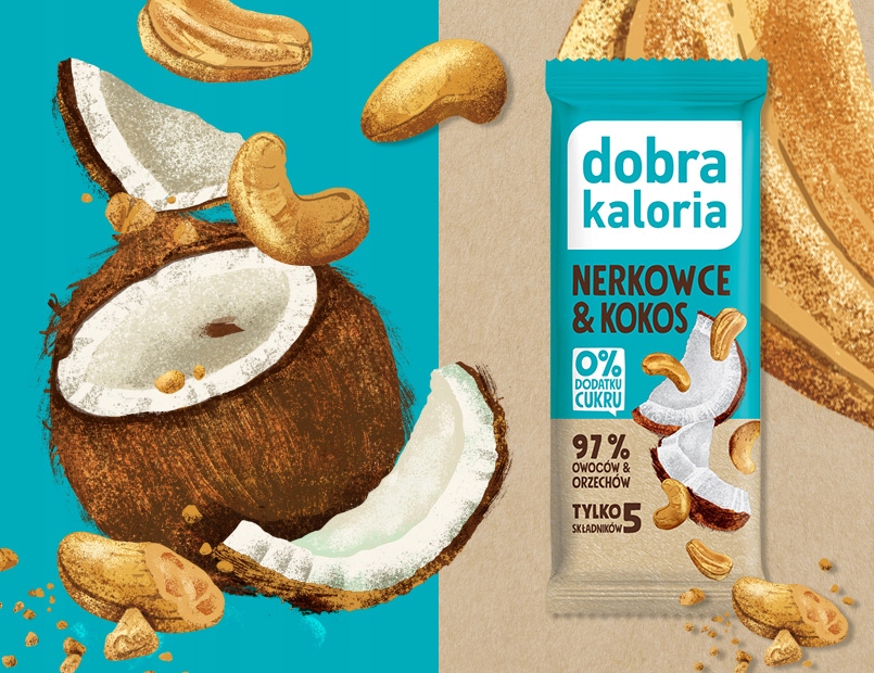 Orzechy nerkowca (40 %), rodzynki (27 %), pasta daktylowa, orzechy nerkowca prażone (5 %), mielona